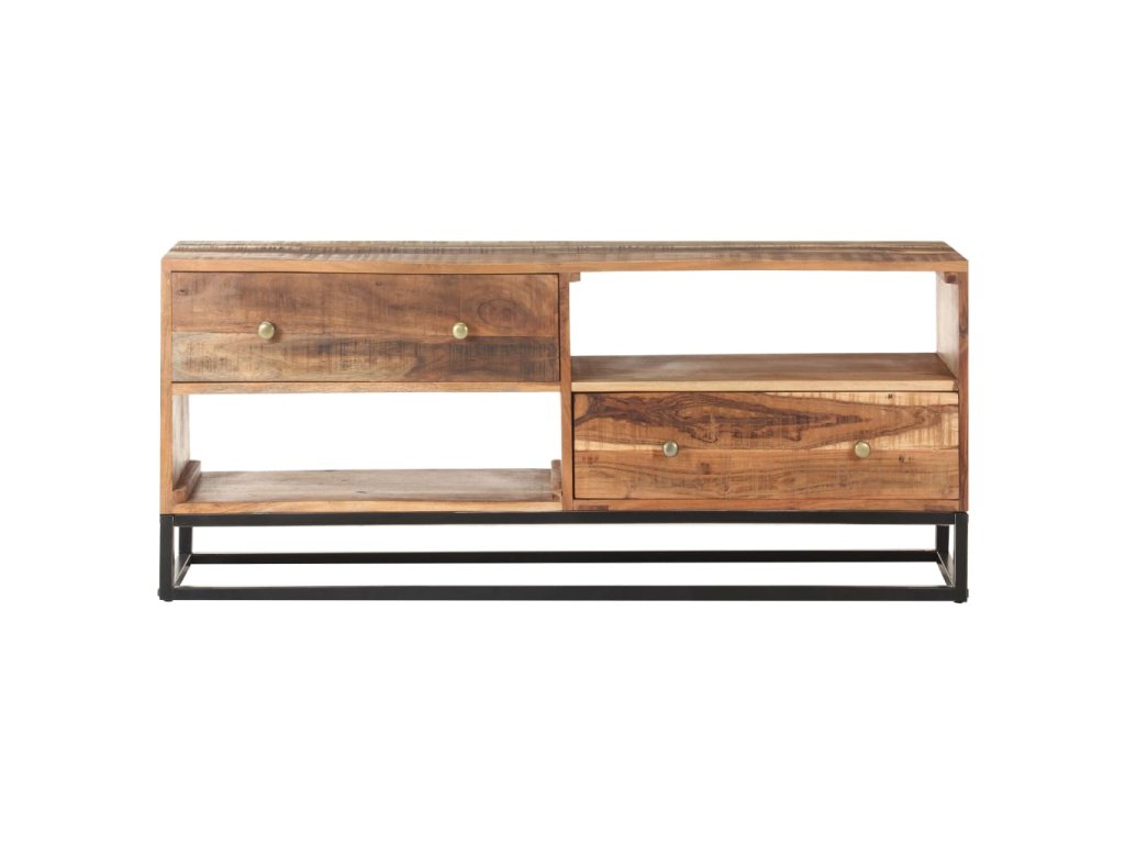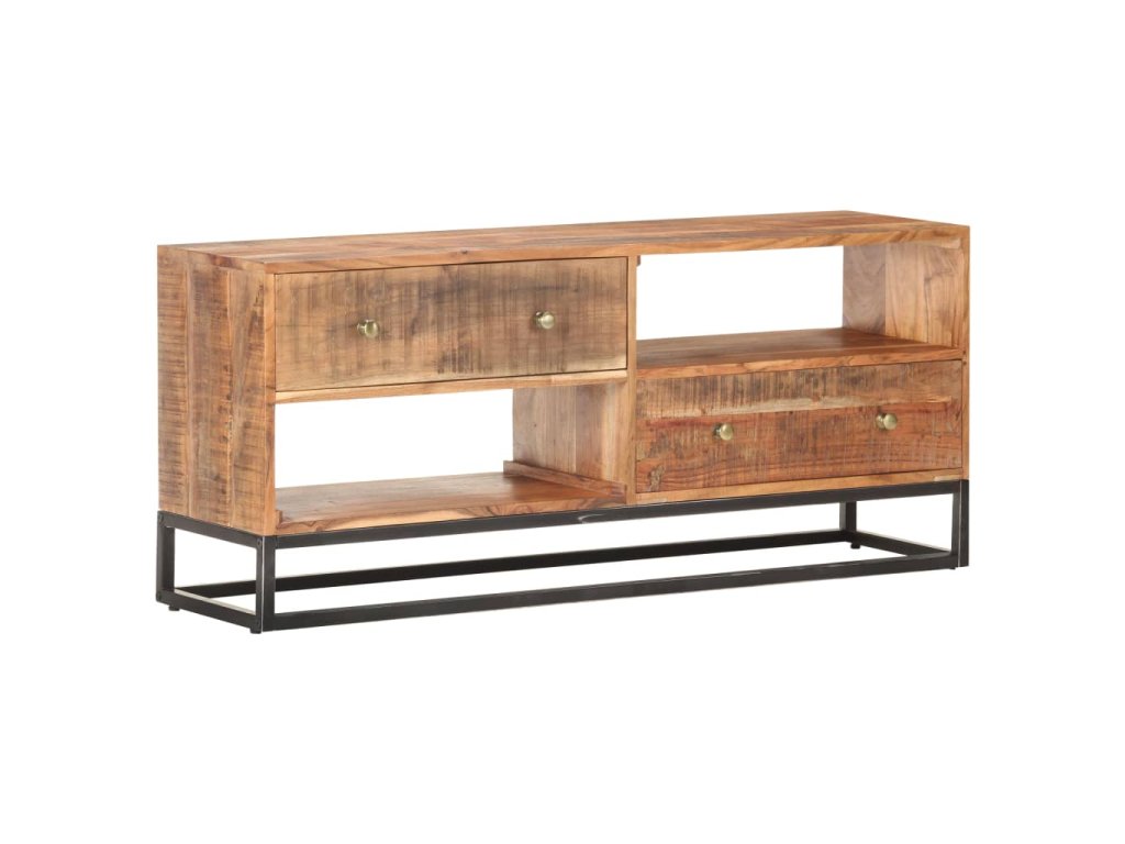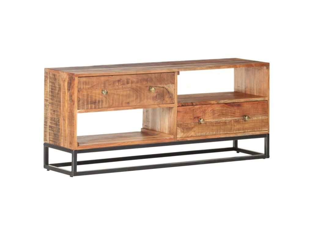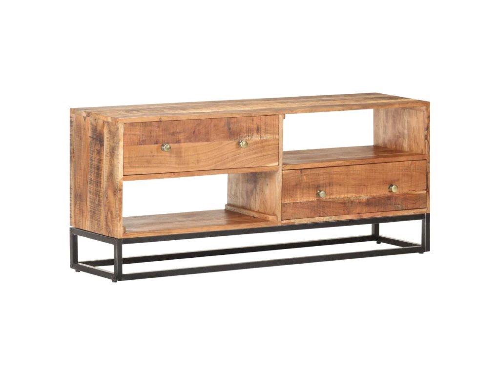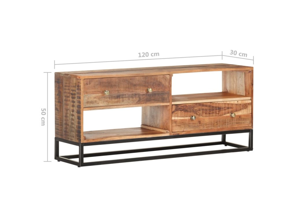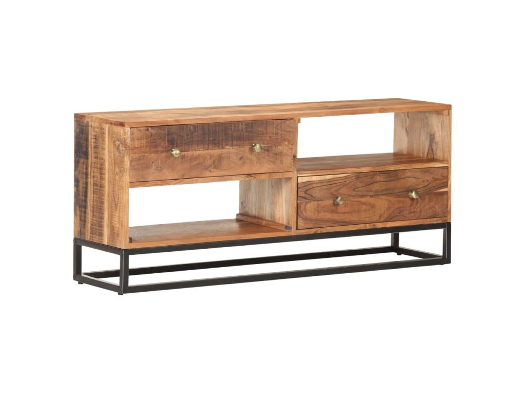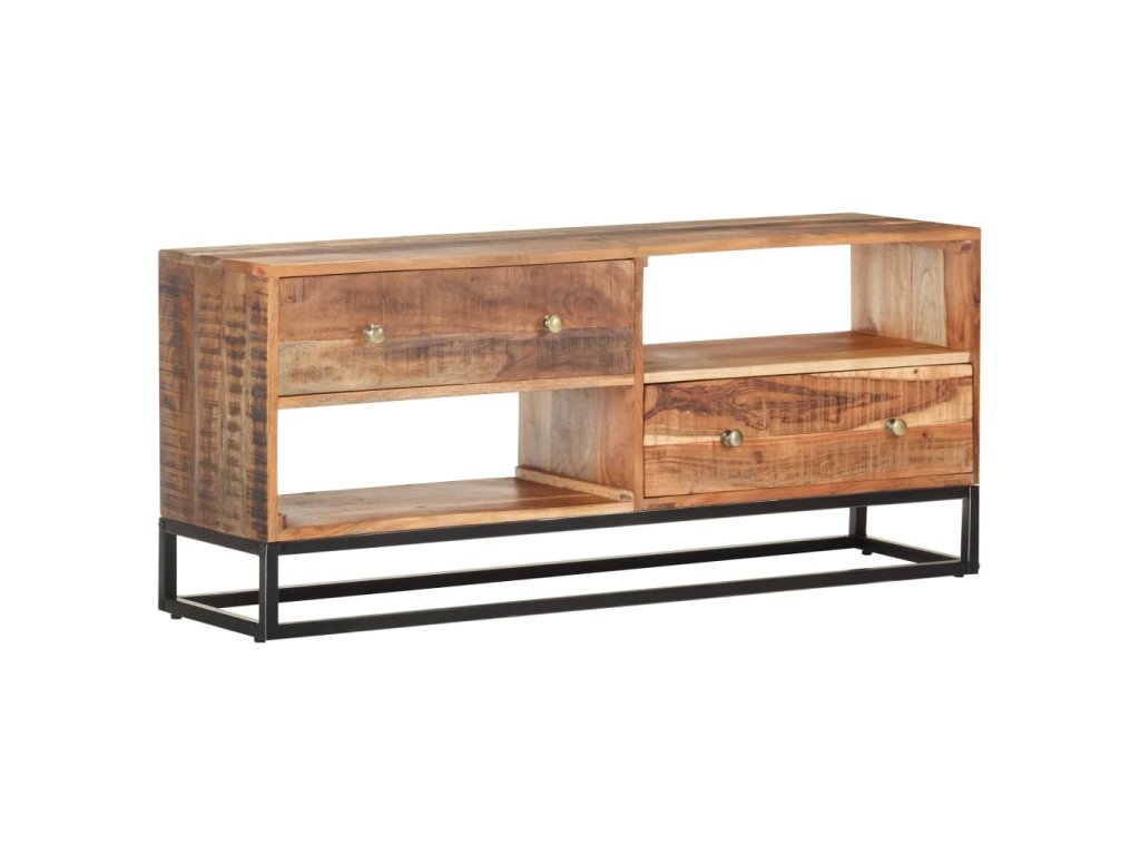 Tento stereo stolík do haly je vyrobený z masívneho surového akáciového dreva, vďaka čomu je robustný a stabilný. Vďaka remeselnému spracovaniu a krásnej drevenej štruktúre je každý kus nábytku jedinečný a mierne sa líši od iných kusov. HiFi skrinka je vybavená 2 zásuvkami a 2 poličkami, čo poskytuje dostatok priestoru na usporiadanie všetkých vecí, ktoré chcete mať uložené. Železný podstavec navyše zvyšuje jej robustnosť.