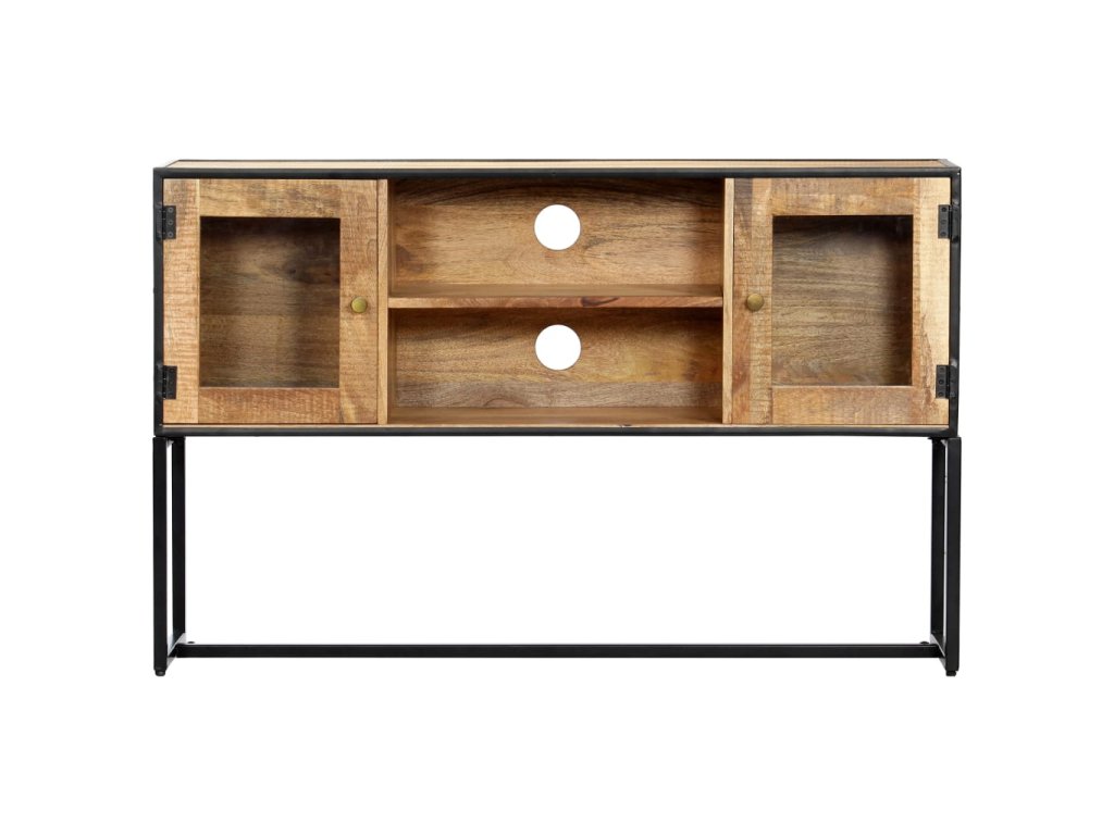 Skrinka na Hi-Fi vežu je vyrobená z recyklovaného masívu, ktorý pochádza z trámov, podláh a nosníkov zo starých stavieb. Pozostáva z rôznych typov dreva, ako napríklad borovicového, tíkového, bukového, dubového, cédrového, mangového či akáciového dreva. Recyklované drevo sa preto vyznačuje vlastnosťami týchto typov dreva. Recyklované drevo je staré, zvetrané a usušené, a preto sa nezmršťuje ani neohýba. Komoda je kompletne ručne vyrobená a vďaka krásnej textúre dreva je každý kus nábytku výnimočný a trochu odlišný od ostatných. TV skrinka s 2 dvierkami a 2 otvorenými priečinkami poskytuje množstvo úložného priestoru na multimediálne zariadenia, knihy či rôzne iné predmety. Skrinka na Hi-Fi vežu je už zostavená, nie je potrebné ju montovať.