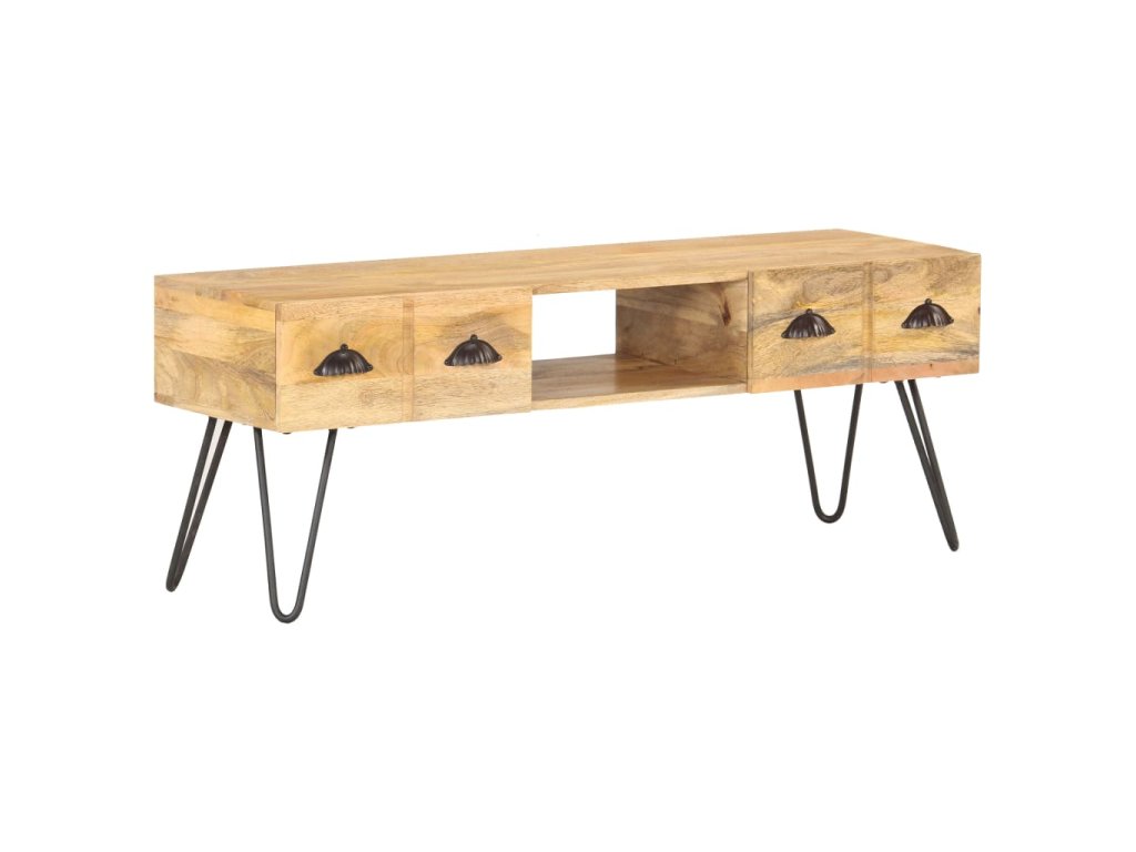 TV stolík je vyrobený z masívneho mangovníkového dreva, tropického tvrdého dreva s pevnosťou uniesť aj vyššiu hmotnosť. Odoláva aj opotrebovaniu časom, takže je stabilný a odolný. Vďaka vynikajúcemu remeselnému opracovaniu a krásnej textúre dreva je každý kus nábytku výnimočný a trochu odlišný od ostatných. Bočná skrinka je vybavená 2 zásuvkami a otvorenou priehradkou, ktorá poskytuje dostatok úložného priestoru na úhľadné uloženie dôležitých vecí na dosah ruky.
