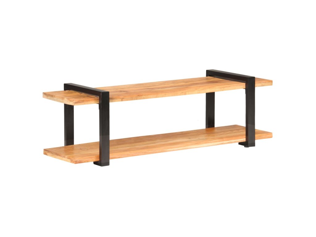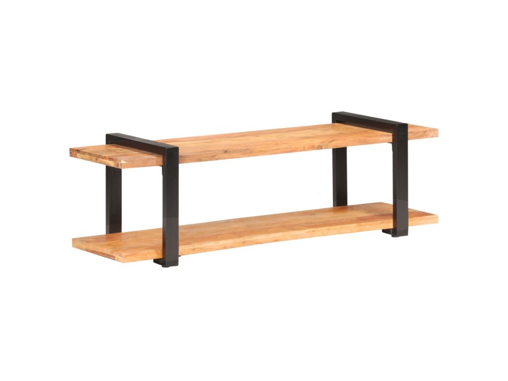 TV stolík je vyrobený z akáciového masívu, tvrdého dreva s bohatou textúrou. Nízka skrinka má krásny dizajn a je stabilná, trvácna a pôsobivá. Vďaka vynikajúcemu remeselnému opracovaniu a krásnej textúre dreva je každý kus nábytku trochu odlišný od ostatných. Železné nohy s práškovou povrchovou úpravou prinášajú potrebnú stabilitu. Polička v spodnej časti poslúži ako ideálne miesto na DVD prehrávač, herné konzoly, streamovacie zariadenia či mediálne nosiče.
