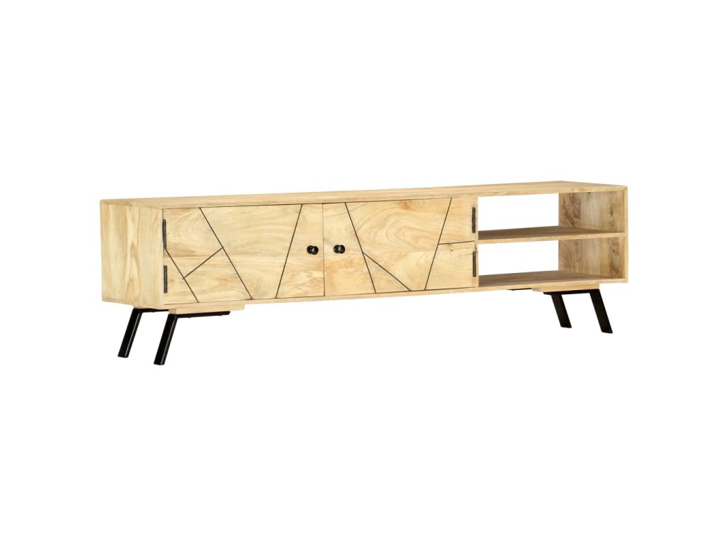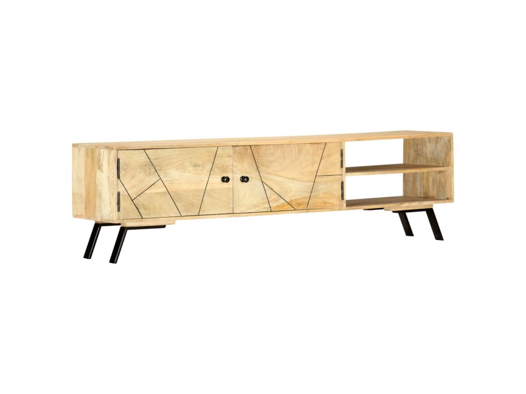 Tento podstavec pod TV je vyrobený z masívneho mangovníkového dreva a je veľmi stabilný a odolný. Robustná vrchná doska je ideálna pre umiestnenie televízora a stereo systémov, alebo dekoratívnych predmetov, ako sú vázy alebo rastliny v kvetináčoch. Tento podstavec pod TV poskytuje dostatok priestoru na úhľadné uloženie DVD prehrávačov, herných konzol, streamovacích zariadení, nosičov médií, atď. Dekoračné motívy dodávajú skrinke rustikálny šarm. Produkt sa jednoducho montuje.