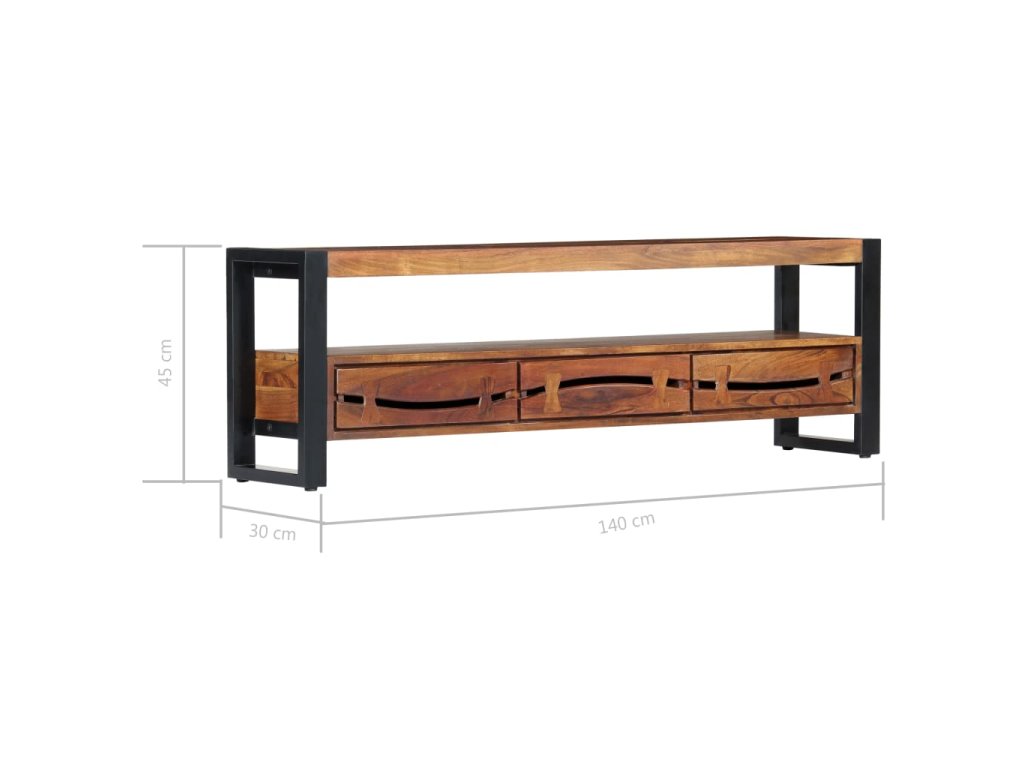 Vďaka vynikajúcemu remeselnému spracovaniu a prekrásnej štruktúre akáciového dreva je každý kus nábytku jedinečný a mierne sa odlišuje od ostatných. Okrem toho má HiFi skrinka 3 zásuvky na odkladanie drobností a 1 priehradku na uchovávanie multimediálnych zariadení, herných konzol, časopisov a rôznych ďalších vecí.