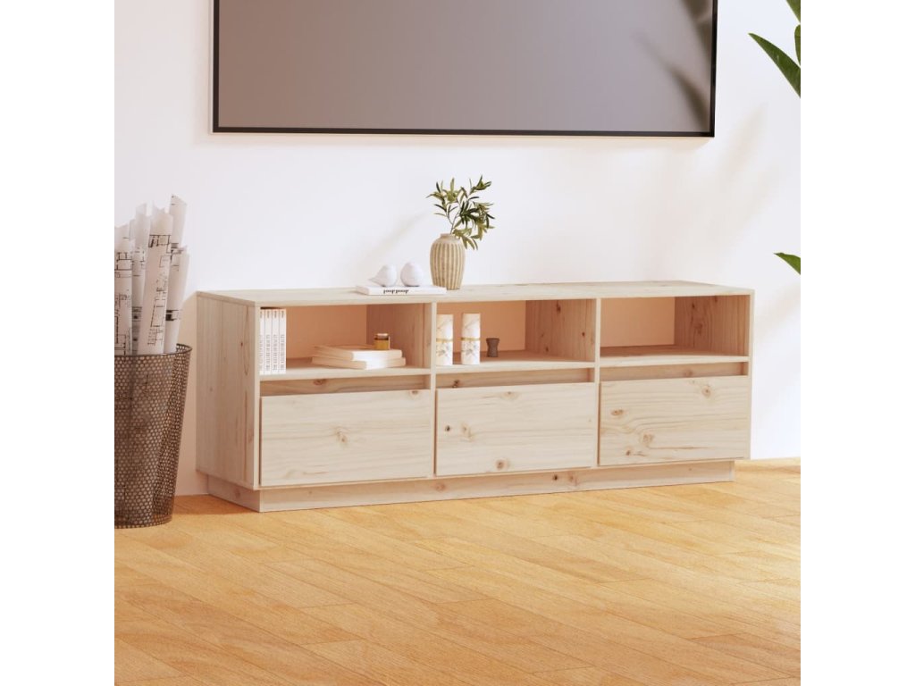 Táto nízka skrinka s nohami je vyrobená z masívneho borovicového dreva a vyznačuje sa stabilnou a odolnou konštrukciou. Stereo skrinka vybavená 3 priečinkami a 3 dvierkami je ideálna na prehľadné usporiadanie vašich DVD diskov, hernej konzoly, časopisov a iných predmetov. Televízny stojan sa navyše ľahko čistí vlhkou handričkou.