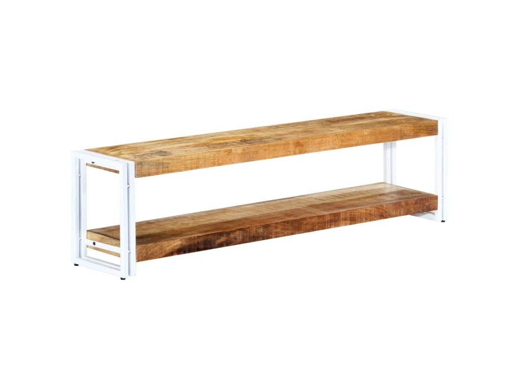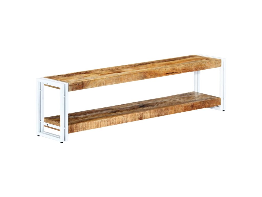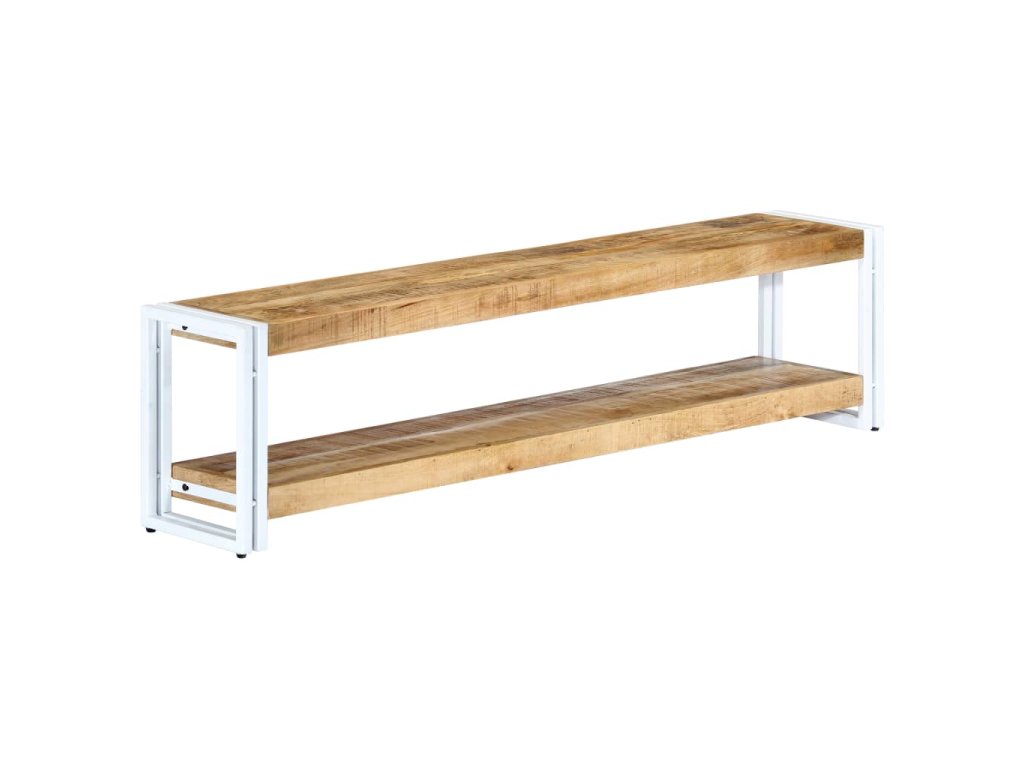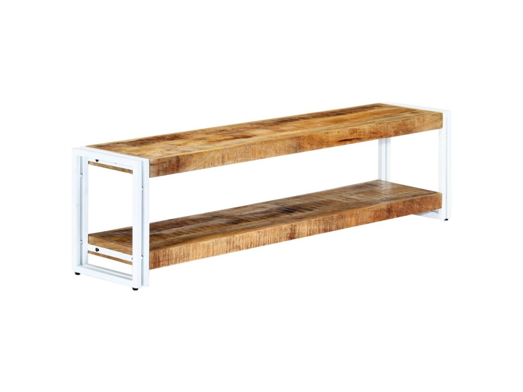 Príručná skrinka je vyrobená z masívneho mangového dreva, je stabilná, odolná a zároveň krásna. Nohy sú vyrobené zo železa, ktoré má práškovú povrchovú úpravu, čo skrinke dodáva stabilitu a priemyselný šarm. Vďaka vynikajúcemu remeselnému spracovaniu a krásnej štruktúre dreva je každý kus nábytku jedinečný a mierne odlišný od ostatných. Každý krok výrobného procesu sa vykonáva s najväčšou starostlivosťou, či už ide o leštenie alebo lakovanie. Okrem toho táto TV skrinka pod vrchnou doskou obsahuje poličku pre dodatočný úložný priestor. TV skrinka sa ľahko montuje.