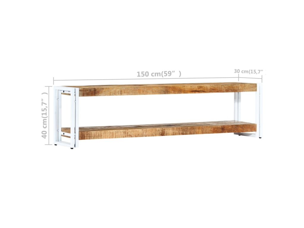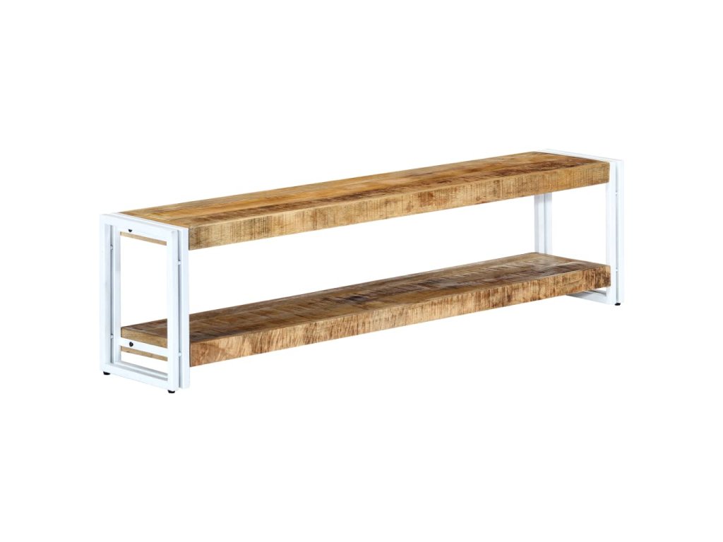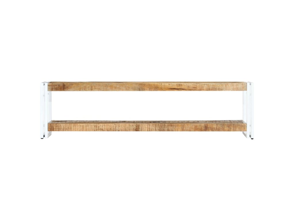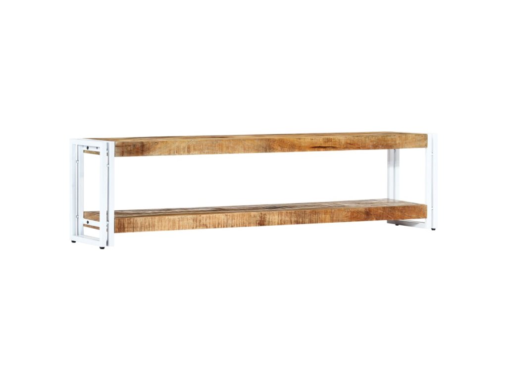 Príručná skrinka je vyrobená z masívneho mangového dreva, je stabilná, odolná a zároveň krásna. Nohy sú vyrobené zo železa, ktoré má práškovú povrchovú úpravu, čo skrinke dodáva stabilitu a priemyselný šarm. Vďaka vynikajúcemu remeselnému spracovaniu a krásnej štruktúre dreva je každý kus nábytku jedinečný a mierne odlišný od ostatných. Každý krok výrobného procesu sa vykonáva s najväčšou starostlivosťou, či už ide o leštenie alebo lakovanie. Okrem toho táto TV skrinka pod vrchnou doskou obsahuje poličku pre dodatočný úložný priestor. TV skrinka sa ľahko montuje.