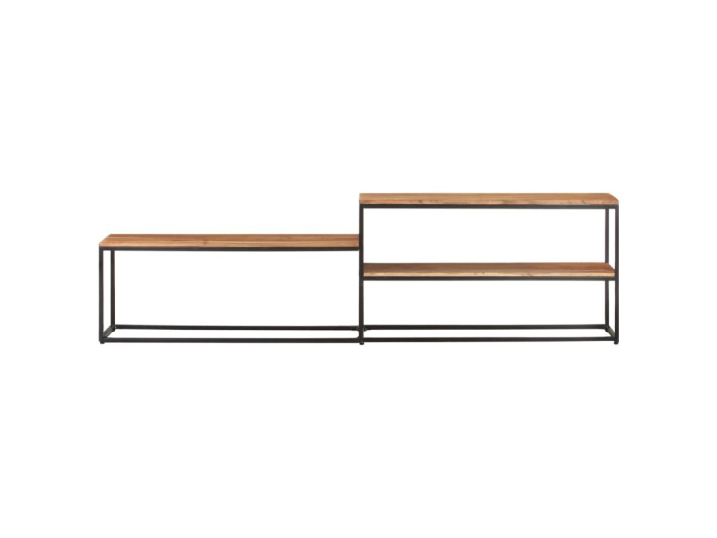TV skrinka je vyrobená z masívneho akáciového dreva, tvrdého dreva s bohatou štruktúrou, a preto je stabilná a odolná. Železný rám jej dodáva stabilitu. Polica tiež poskytuje dostatok priestoru na uloženie vašich multimediálnych spotrebičov, kníh a rôznych ďalších vecí.