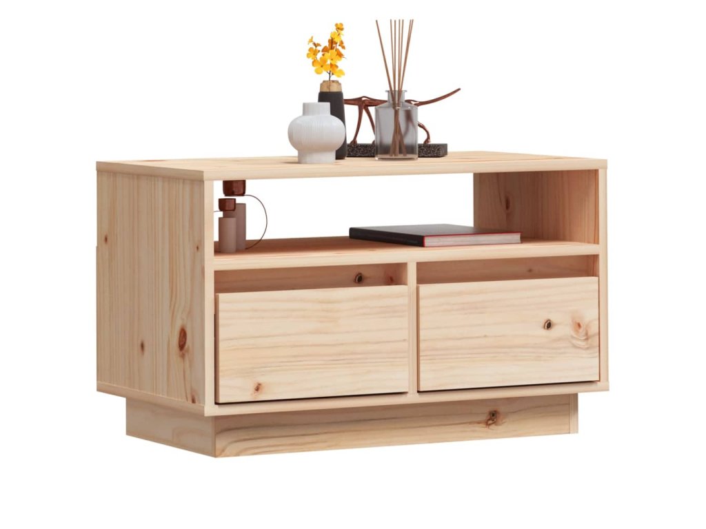 Táto nízka skrinka s nohami je vyrobená z masívneho borovicového dreva a vyznačuje sa stabilnou a odolnou konštrukciou. Stereo skrinka vybavená otvorenou priehradkou a 2 zásuvkami je ideálna na prehľadné usporiadanie vašich DVD diskov, hernej konzoly, časopisov a iných predmetov. Televízny stojan sa navyše ľahko čistí vlhkou handričkou.