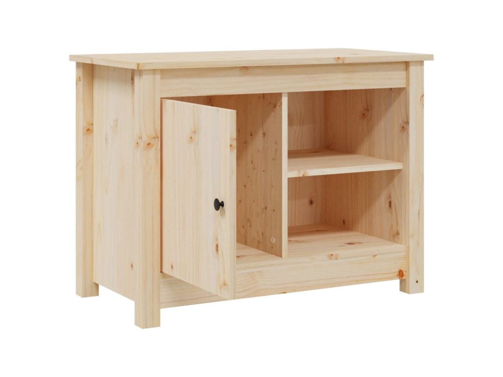 - Masívne borovicové drevo: Masívne borovicové drevo je krásny prírodný materiál. Borovicové drevo má rovnú štruktúru a uzly dodávajú materiálu jeho typický rustikálny vzhľad. Tento TV stolík je vyrobený z masívneho dreva pre extra stabilitu.