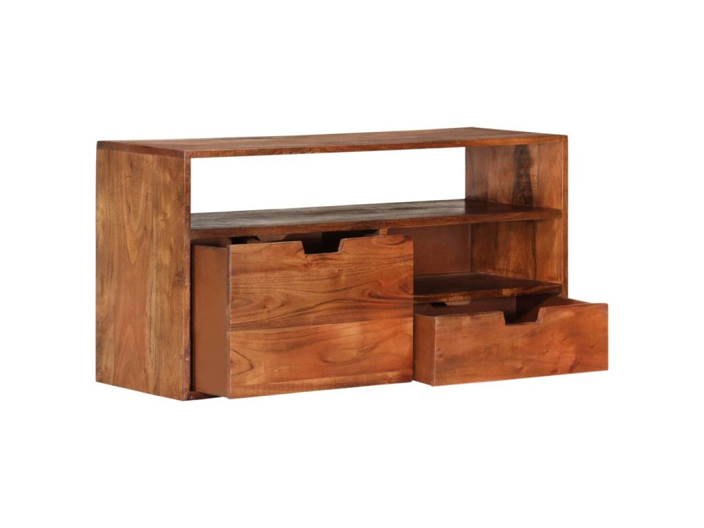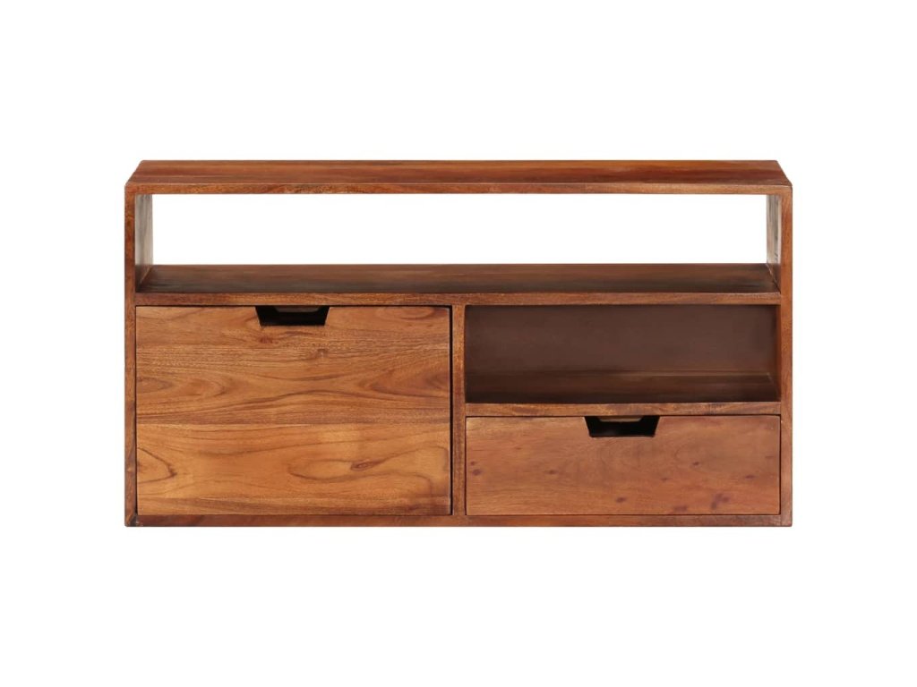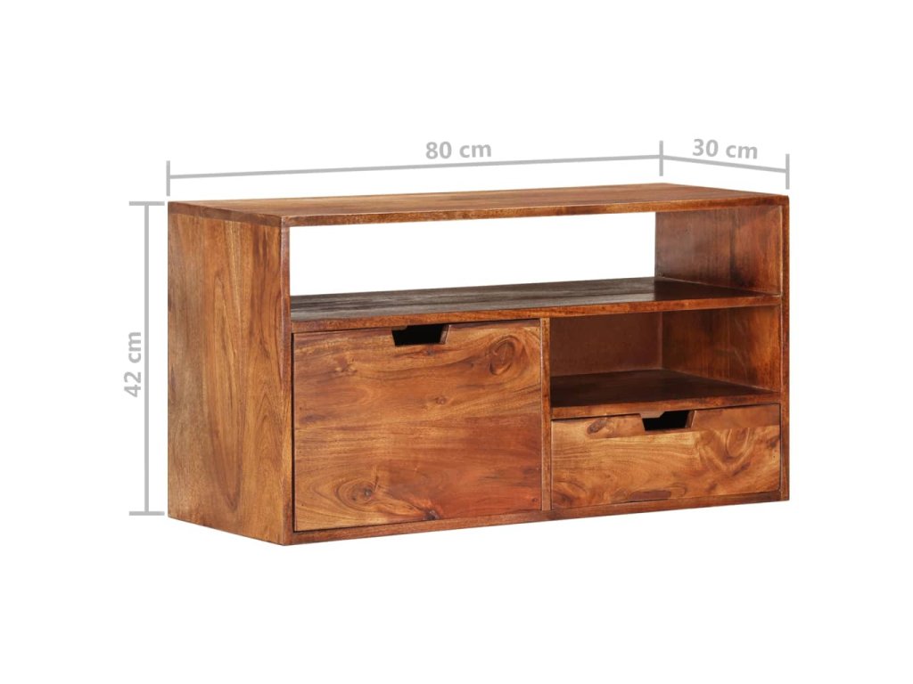 Skrinka je vyrobená z akáciového masívu, vďaka čomu je stabilná a trvácna. Skrinka na Hi-Fi vežu poskytuje dostatok priestoru na prehľadné odkladanie DVD prehrávačov, herných konzol, streamovacích zariadení, mediálnych nosičov a podobne. Dôležitá poznámka: Farby jednotlivých výrobkov sa môžu líšiť, a tak je každý TV stolík jedinečný; výber výrobkov na doručenie je náhodný.