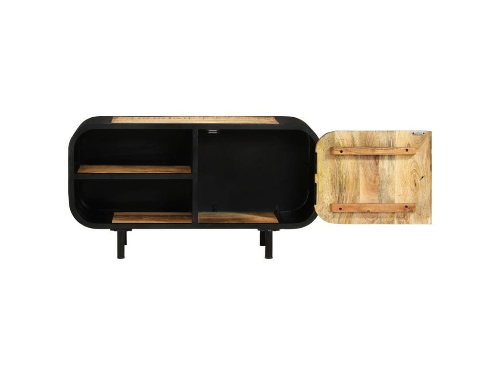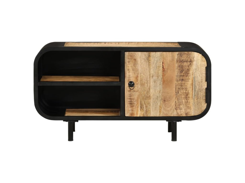 Televízny stojan je vyrobený zo surového mangového dreva, ktoré má pevnosť, aby unieslo váhu, a zároveň odolá opotrebovaniu časom. Vďaka remeselnému spracovaniu a krásnej štruktúre dreva je každý kus nábytku jedinečný a trochu odlišný od ostatných. Bočná skrinka navyše poskytuje dostatok priestoru na odkladanie multimediálnych zariadení, nosičov médií a akýchkoľvek iných predmetov.