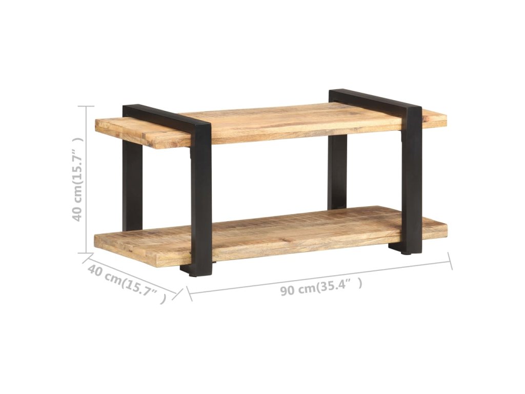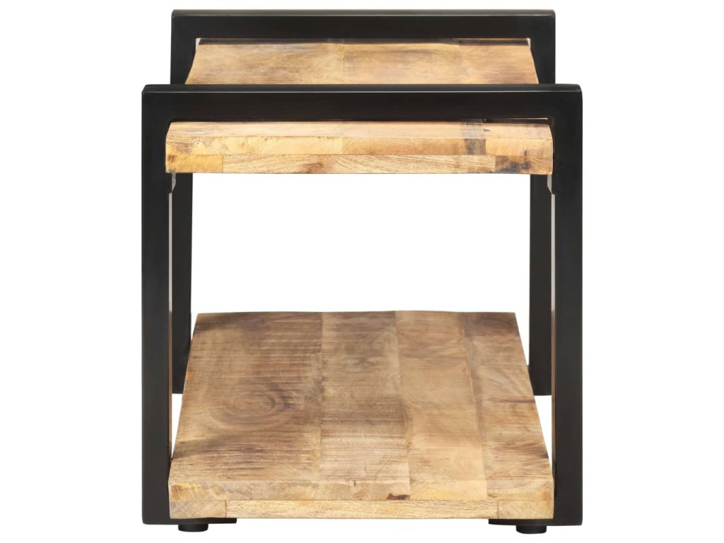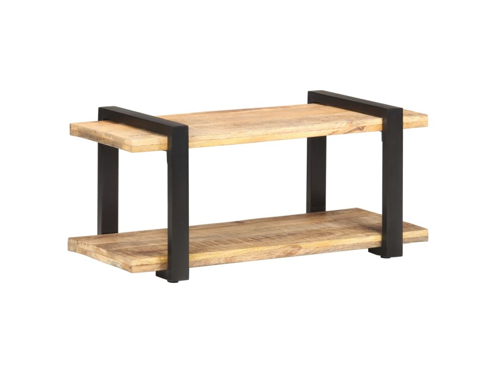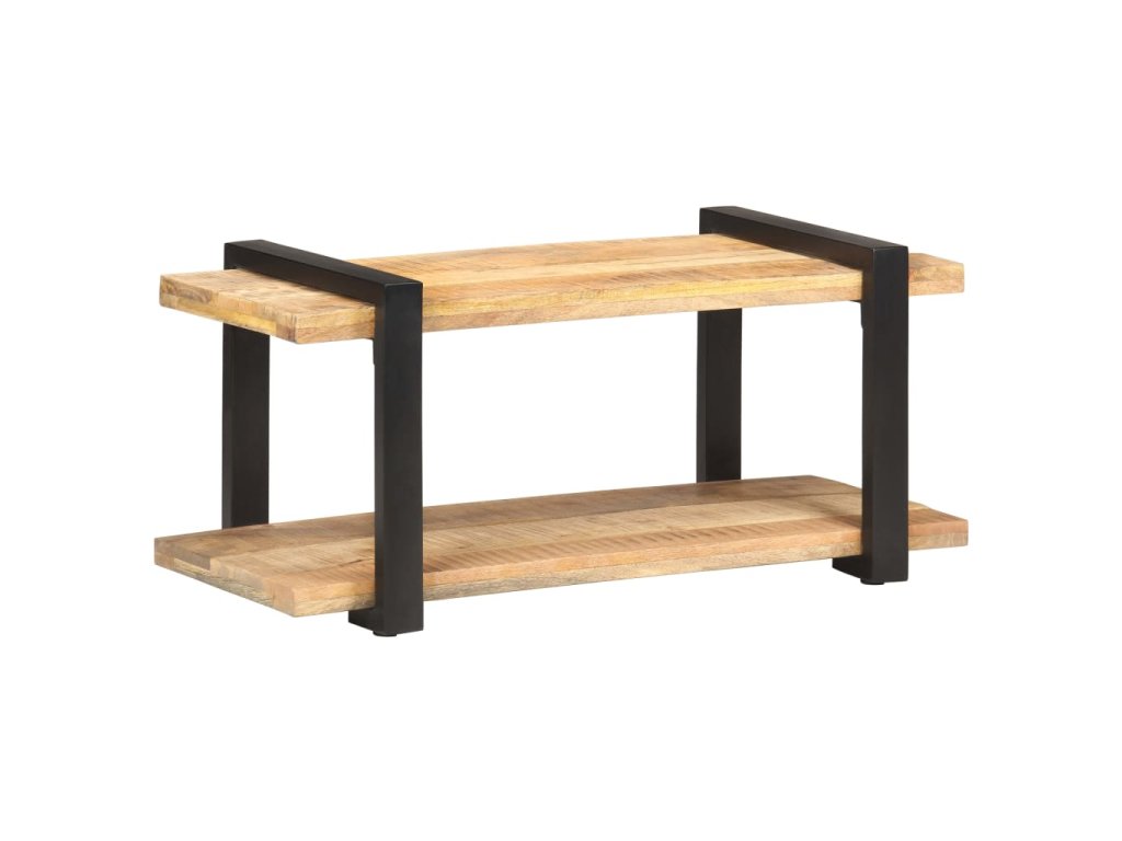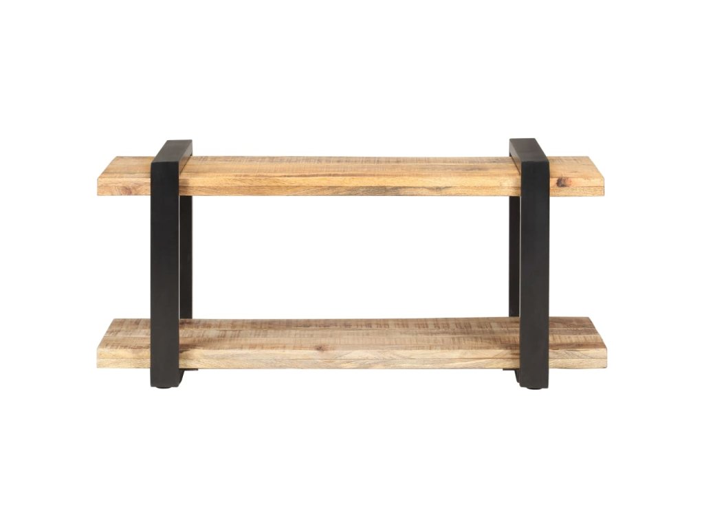 TV stolík je vyrobený zo surového mangového dreva, vďaka čomu je skutočne stabilný a trvácny. Mangový masív je drevo tropického listnatého stromu, ktoré je dostatočne pevné na to, aby unieslo aj značnú váhu, no zároveň odoláva každodennému opotrebovaniu. Vďaka remeselnému opracovaniu a krásnej textúre dreva je každý kus nábytku jedinečný a trochu odlišný od ostatných. Železné nohy s čiernou práškovou povrchovou úpravou prinášajú potrebnú stabilitu. Polička v spodnej časti poslúži ako ideálne miesto na DVD prehrávač, herné konzoly, streamovacie zariadenia či mediálne nosiče.