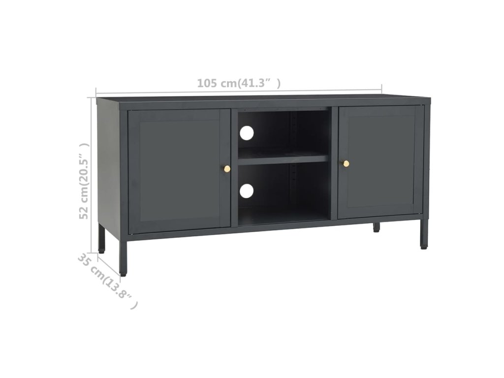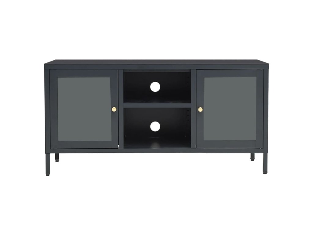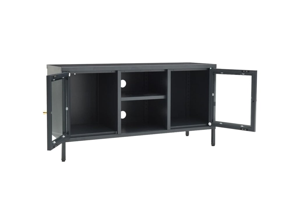 Konštrukcia tejto TV jednotky je vyrobená z ocele, a je pevná a odolná, čo zaručuje roky používania. Televízna jednotka má v sklenených dvierkach priehradku a otvorené police, ktoré ponúkajú dostatok úložného priestoru na uloženie a vystavenie vašich kníh, časopisov, DVD, váz a iných dekoratívnych predmetov, ktoré sú dobre usporiadané a na dosah ruky. Policu je tiež možné nainštalovať do rôznej úrovne, aby sa zmenila veľkosť úložného priestoru. Nohy sa dajú ľahko nastaviť na požadovanú výšku a pomáhajú skrinke udržať stabilitu. Skrinka sa ľahko čistí vlhkou handričkou.