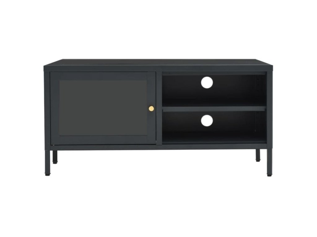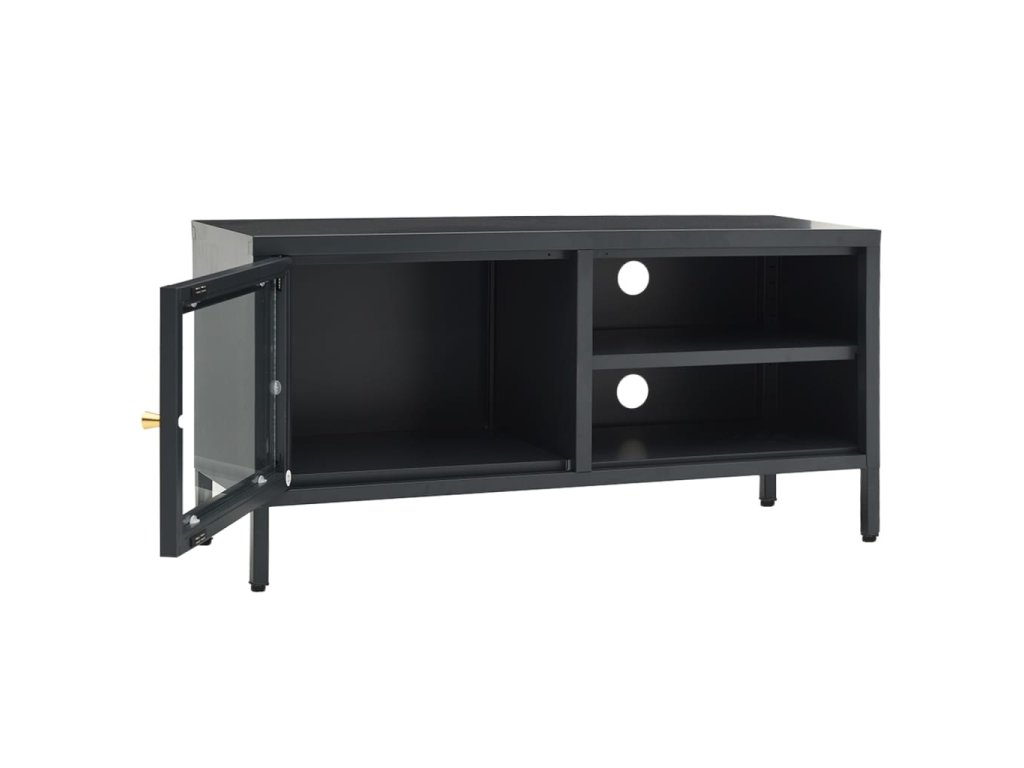 Konštrukcia tejto TV jednotky je vyrobená z ocele, a je pevná a odolná, čo zaručuje roky používania. Televízna jednotka má v sklenených dvierkach priehradku a otvorené police, ktoré ponúkajú dostatok úložného priestoru na uloženie a vystavenie vašich kníh, časopisov, DVD, váz a iných dekoratívnych predmetov, ktoré sú dobre usporiadané a na dosah ruky. Policu je tiež možné nainštalovať do rôznej úrovne, aby sa zmenila veľkosť úložného priestoru. Nohy sa dajú ľahko nastaviť na požadovanú výšku a pomáhajú skrinke udržať stabilitu. Skrinka sa ľahko čistí vlhkou handričkou.