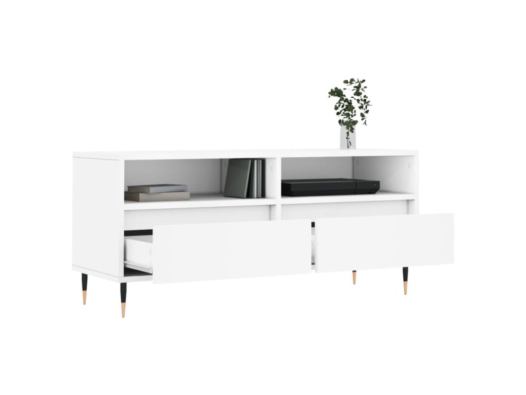 - Pevný materiál: Spracované drevo je mimoriadne kvalitné s hladkým povrchom a vyznačuje sa pevnosťou, stabilitou a odolnosťou proti vlhkosti. TV stolík je vyrobený zo spracovaného dreva a ľahko sa čistí vlhkou handričkou.