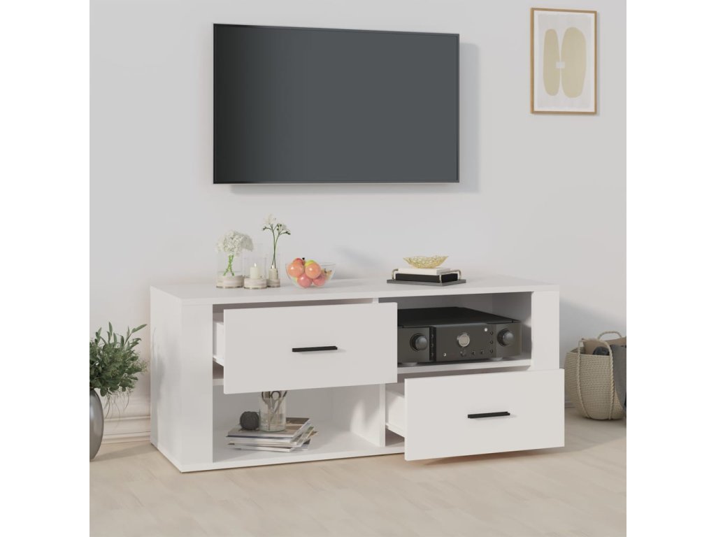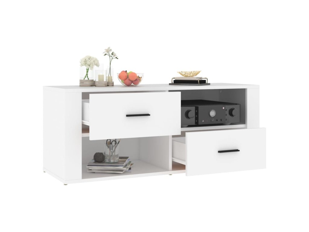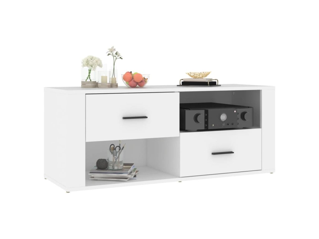 - Dostatok úložného priestoru: Stereo skrinka obsahuje zásuvky a priehradky na prehľadné usporiadanie DVD prehrávačov, herných konzol, streamovacích zariadení a nosičov médií.