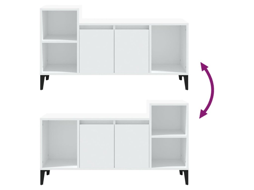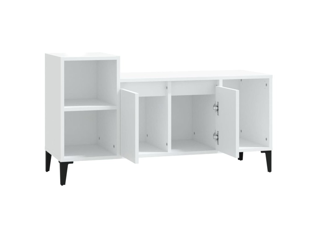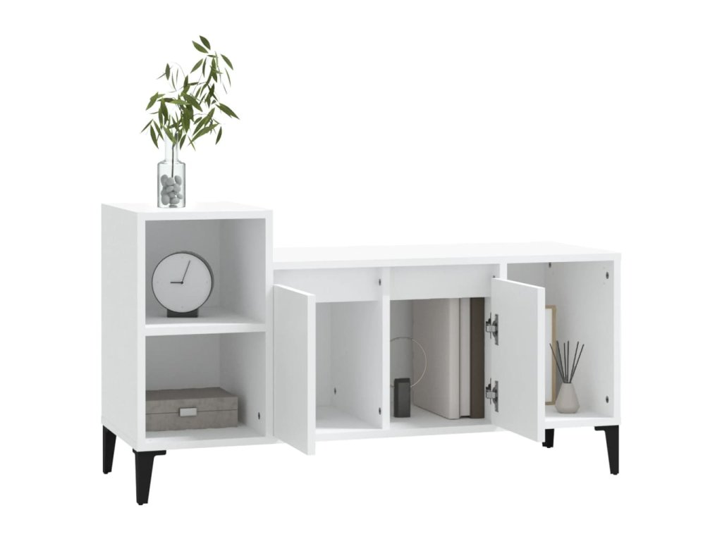 - Dostatok úložného priestoru: Stereo skrinka obsahuje dvierka a priehradky na prehľadné usporiadanie DVD prehrávačov, herných konzol, streamovacích zariadení a nosičov médií.