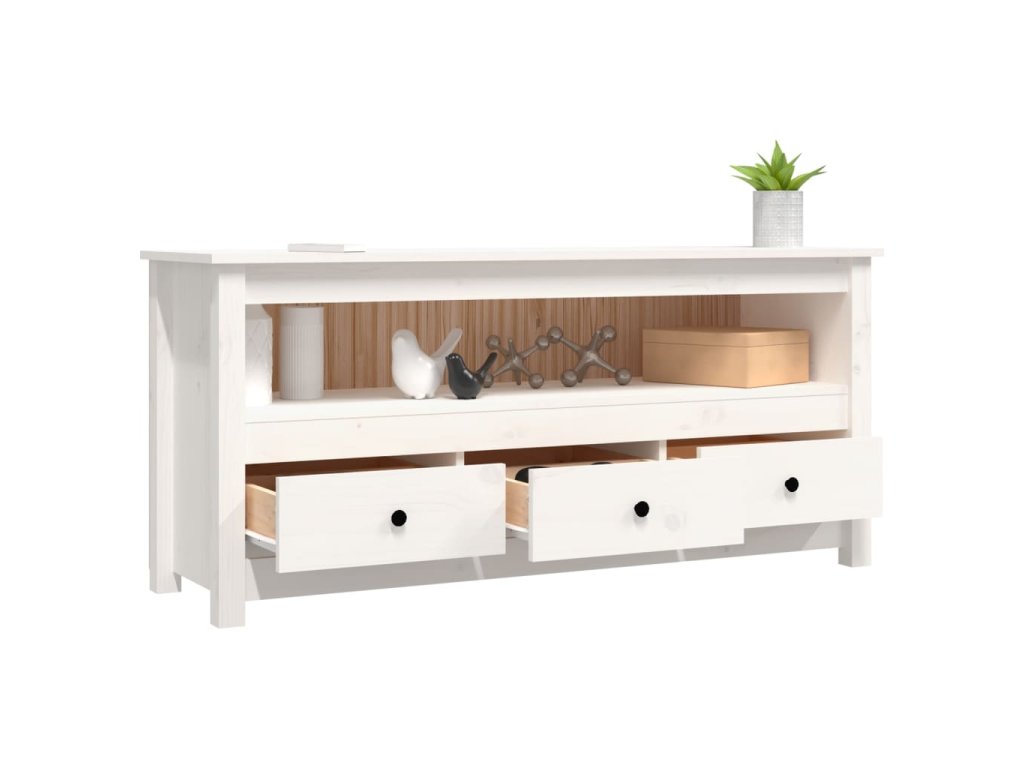 - Dostatok úložného priestoru: Táto TV skrinka s 3 zásuvkami a 1 veľkou priehradkou uľahčuje usporiadanie médií a iných základných predmetov.
