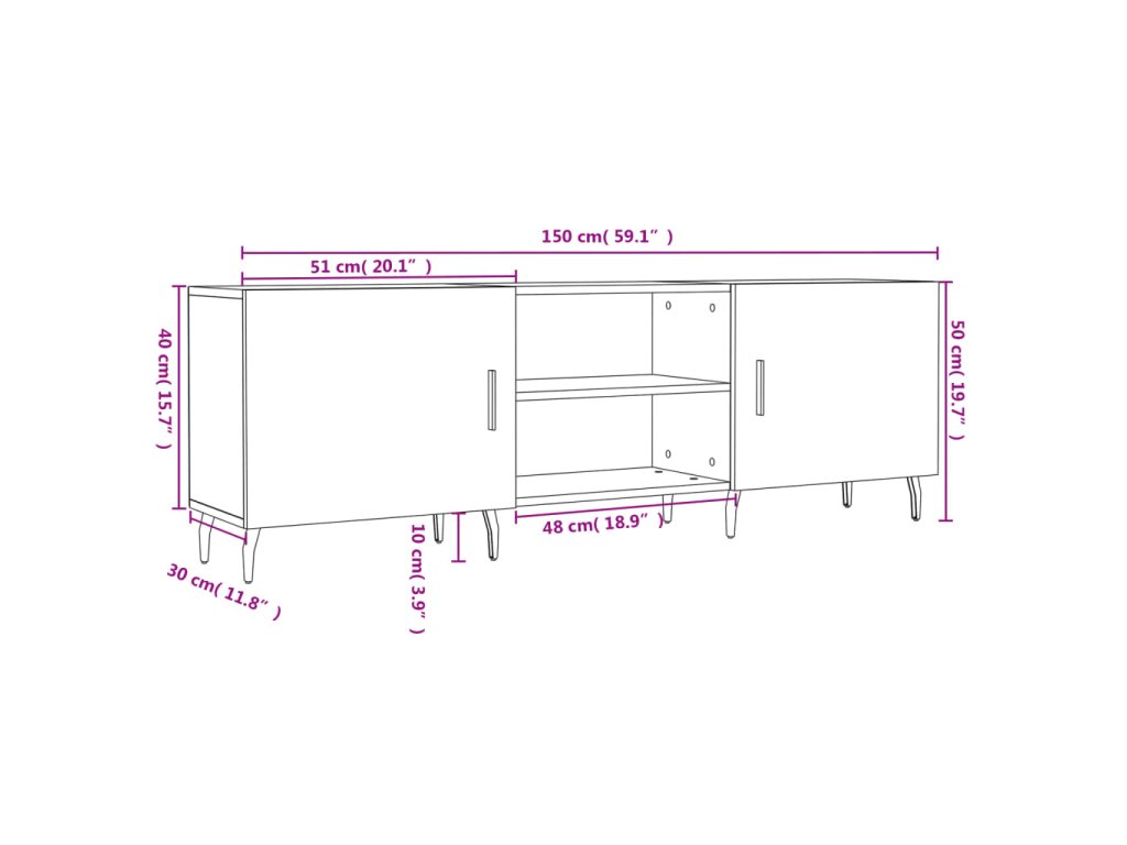 - Veľký úložný priestor: TV skrinka má 4 priehradky, vďaka ktorým je ideálna na uloženie vašich časopisov, DVD alebo iných predmetov.