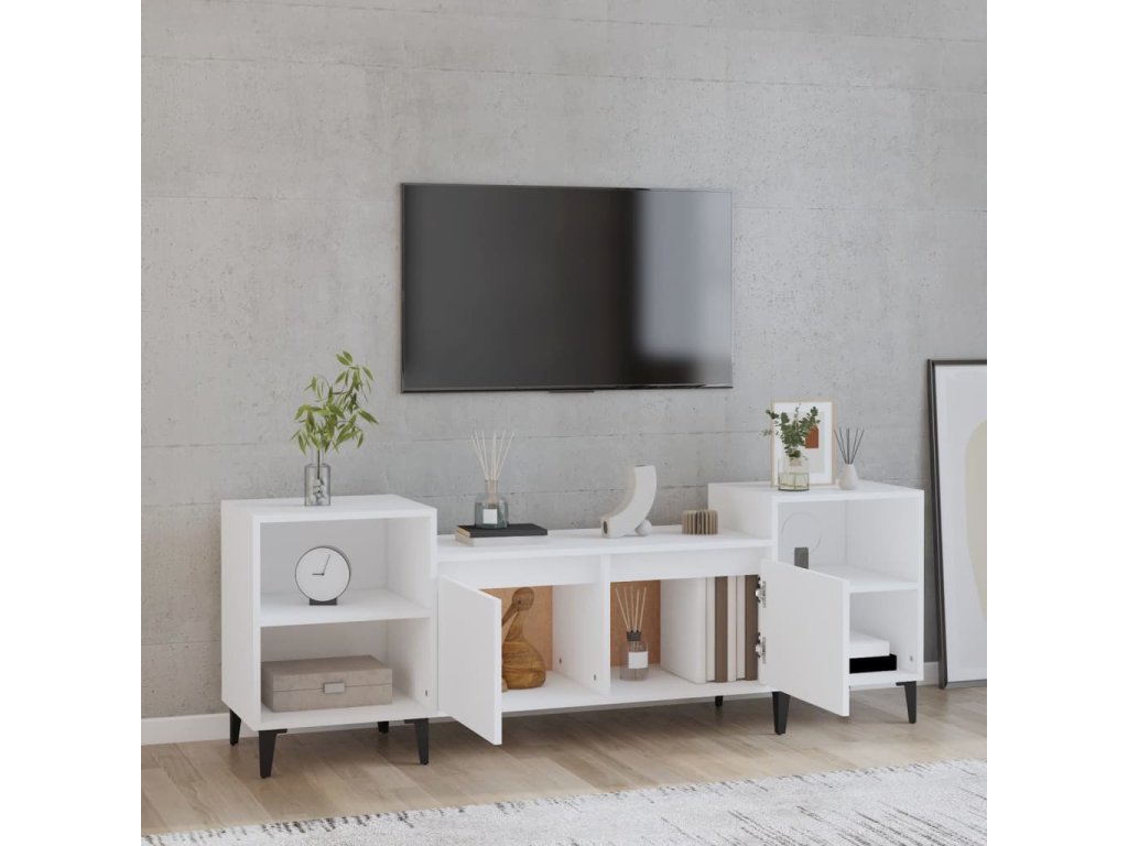 - Pevný materiál: Spracované drevo je mimoriadne kvalitné s hladkým povrchom a vyznačuje sa pevnosťou, stabilitou a odolnosťou proti vlhkosti. TV stolík je vyrobený zo spracovanéno dreva a ľahko sa čistí.
