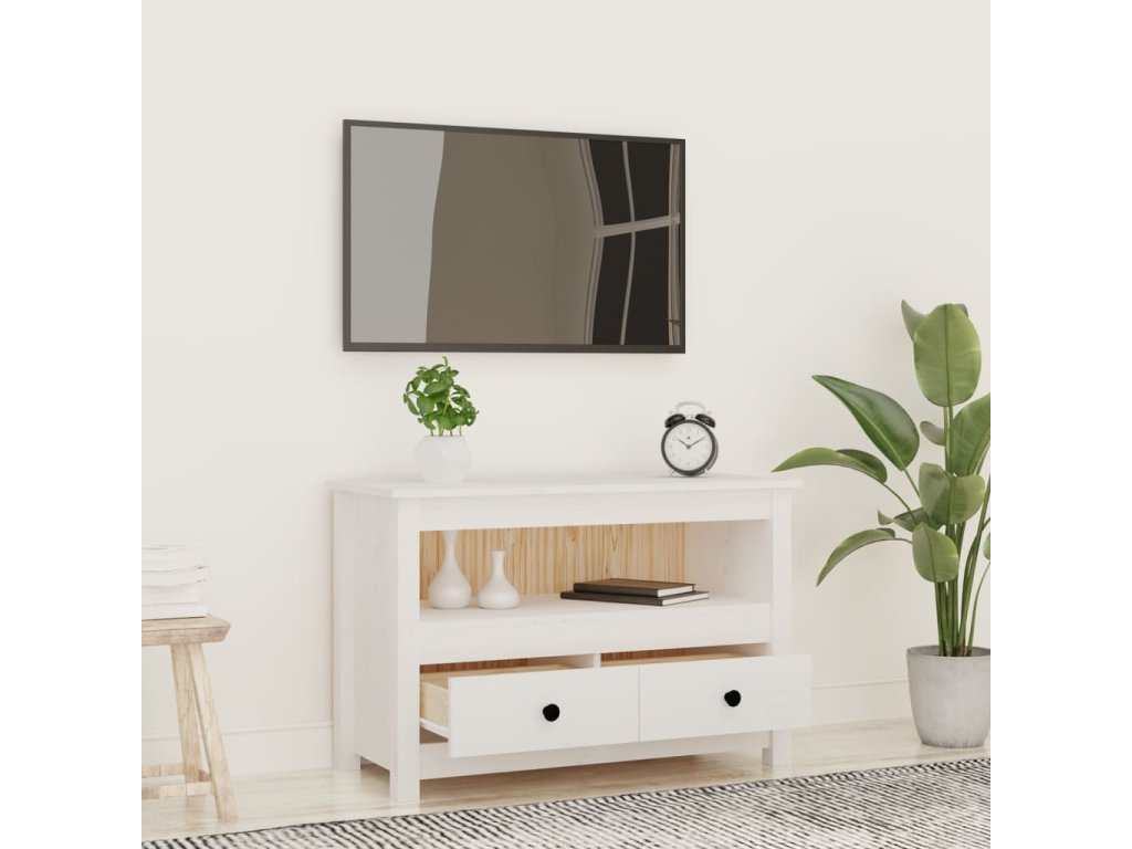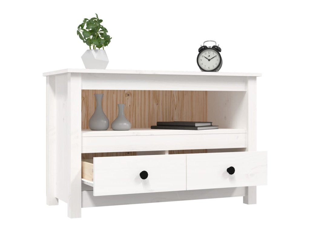 - Dostatok úložného priestoru: Táto TV skrinka s 2 zásuvkami a 1 veľkou priehradkou uľahčuje usporiadanie médií a iných základných predmetov.