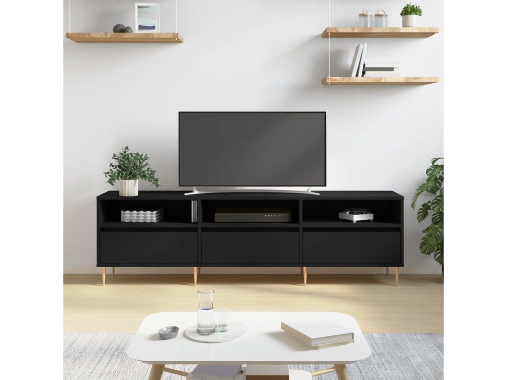 - Pevný materiál: Spracované drevo je mimoriadne kvalitné s hladkým povrchom a vyznačuje sa pevnosťou, stabilitou a odolnosťou proti vlhkosti. TV stolík je vyrobený zo spracovaného dreva a ľahko sa čistí vlhkou handričkou.