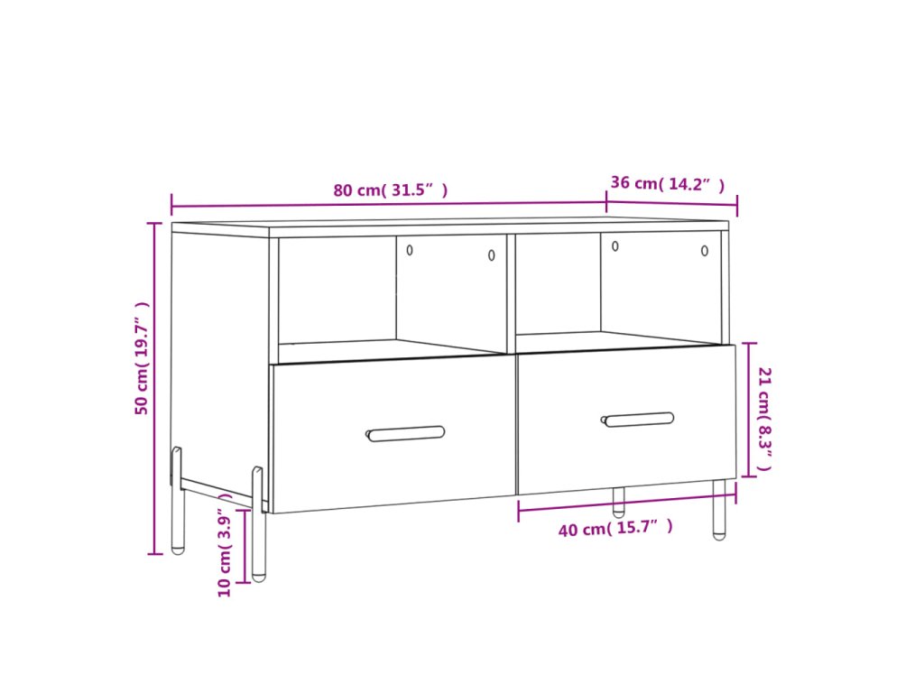 - Veľký úložný priestor: TV skrinka má 2 priečinky a 2 zásuvky, vďaka ktorým je ideálna na uloženie vašich časopisov, DVD alebo iných predmetov.