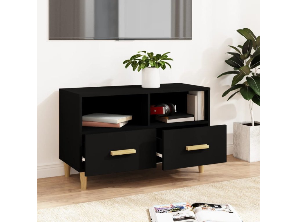 - Dostatok úložného priestoru: Táto TV skrinka s 2 zásuvkami a 2 priehradkami uľahčuje usporiadanie médií a iných základných predmetov.