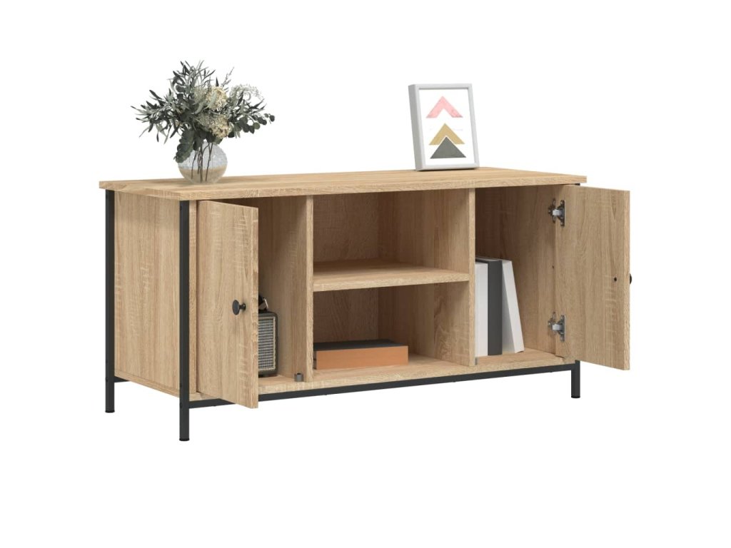 - Dostatok úložného priestoru: TV skrinka obsahuje 2 priečinky s dvierkami a 2 otvorené poličky na prehľadné usporiadanie DVD prehrávačov, herných konzol, streamovacích zariadení a nosičov médií.
