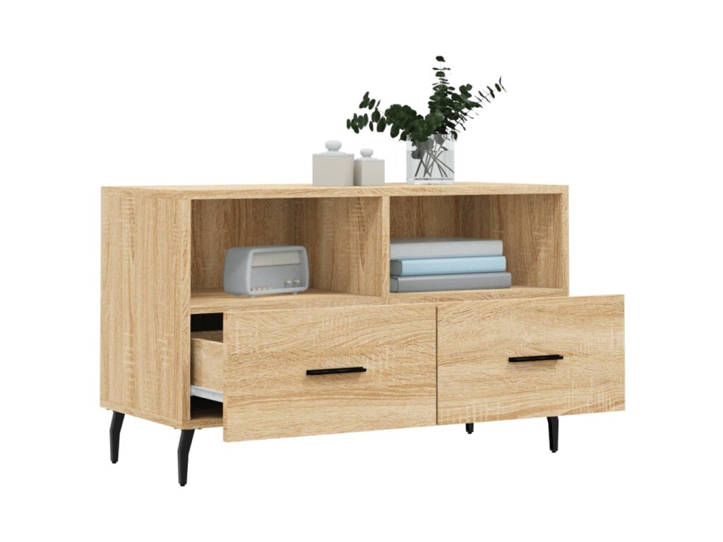 - Veľký úložný priestor: TV skrinka má 2 priečinky a 2 zásuvky, vďaka ktorým je ideálna na uloženie vašich časopisov, DVD alebo iných predmetov.