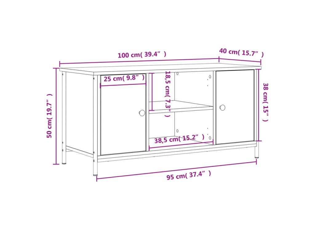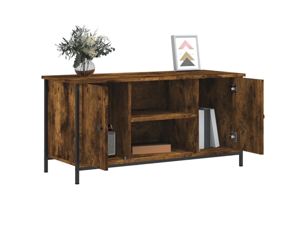 - Dostatok úložného priestoru: TV skrinka obsahuje 2 priečinky s dvierkami a 2 otvorené poličky na prehľadné usporiadanie DVD prehrávačov, herných konzol, streamovacích zariadení a nosičov médií.