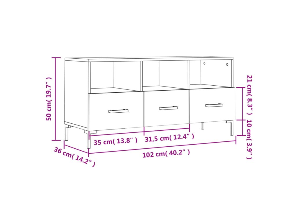 - Rozmery: 102 x 36 x 50 cm (Š x H x V)