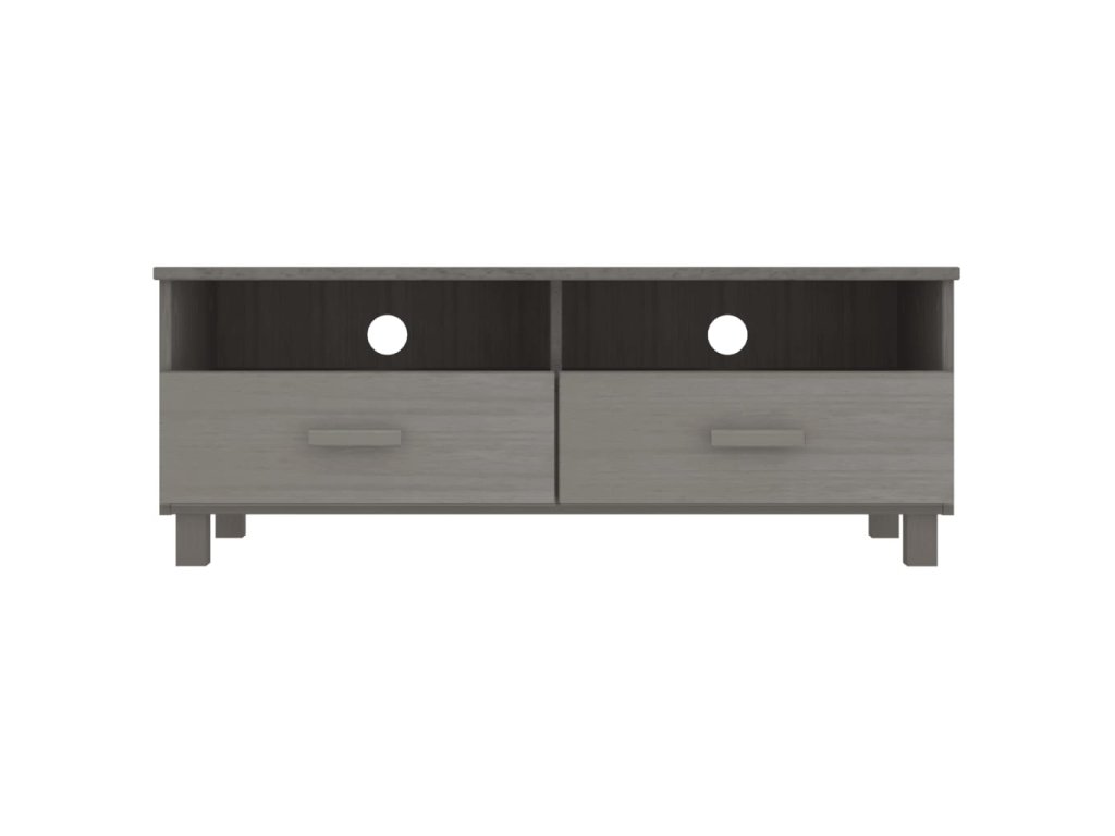 TV stolík je vyrobený z masívneho borovicového dreva, vďaka čomu je stabilný a pevný. Televízna jednotka má 2 hladké posuvné zásuvky a 2 priehradky, ktoré poskytujú dostatok úložného priestoru na uloženie vašich multimediálnych zariadení, kníh a iných predmetov dobre organizovaných a na dosah ruky. Pevná stolová doska je ideálna na vystavenie dekoratívnych predmetov, fotorámikov a rastlín v črepníkoch. Vďaka otvoru na zadnej strane môžete skryť káble za skrinku, aby ste ich nemali na očiach.