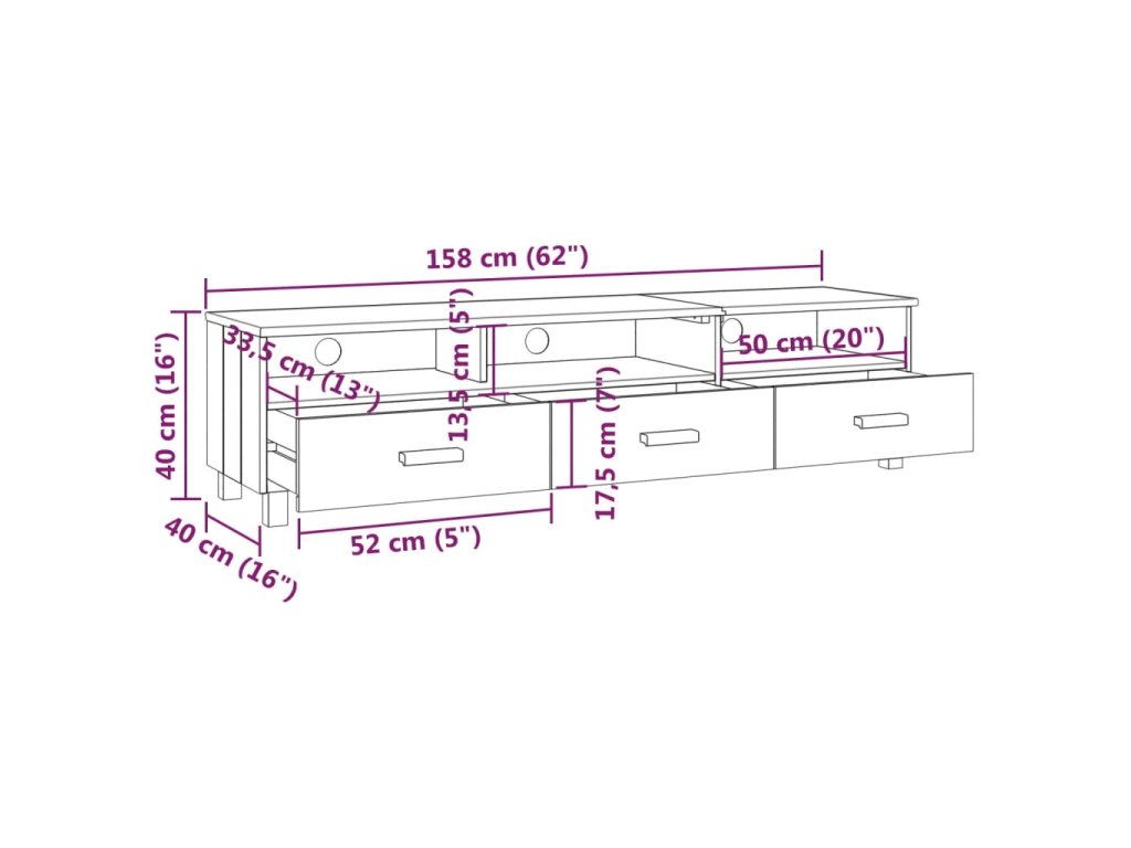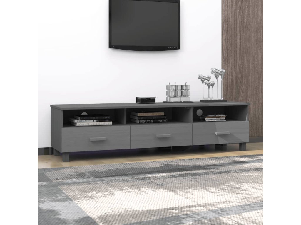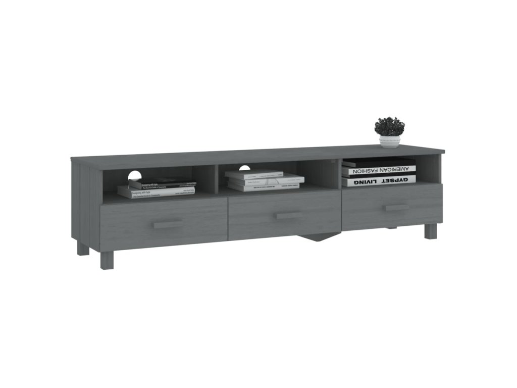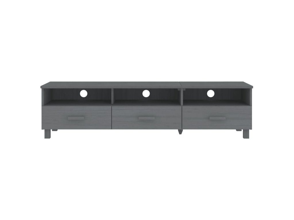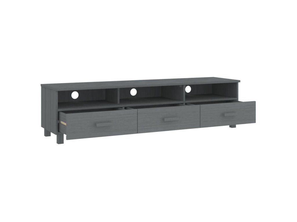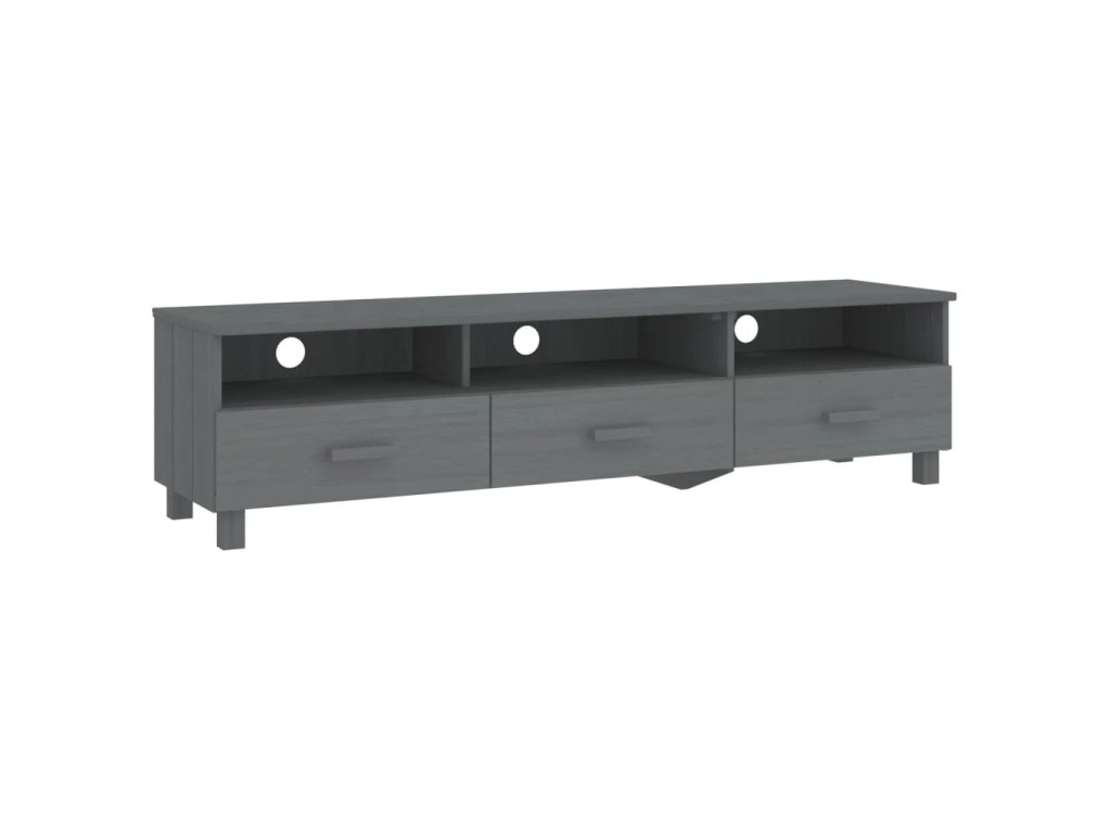 TV stolík je vyrobený z masívneho borovicového dreva, vďaka čomu je stabilný a pevný. Televízna jednotka má 3 hladké posuvné zásuvky a 3 priehradky, ktoré poskytujú dostatok úložného priestoru na uloženie vašich multimediálnych zariadení, kníh a iných predmetov dobre organizovaných a na dosah ruky. Pevná stolová doska je ideálna na vystavenie dekoratívnych predmetov, fotorámikov a rastlín v črepníkoch. Vďaka otvoru na zadnej strane môžete skryť káble za skrinku, aby ste ich nemali na očiach.