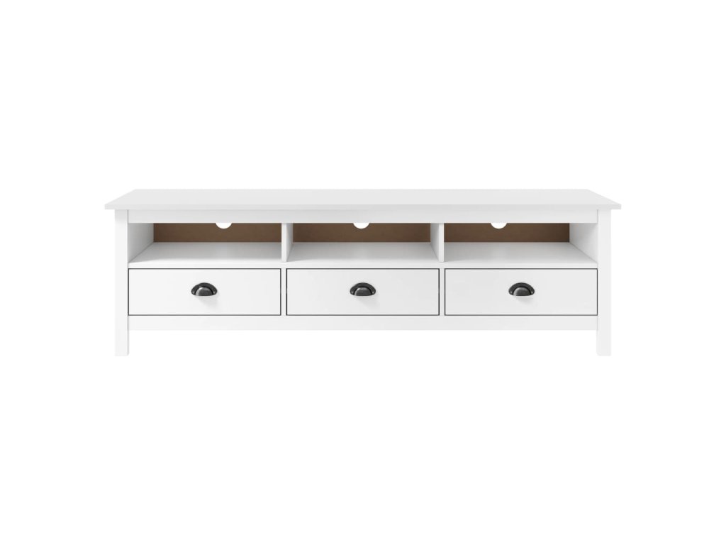Táto TV skrinka vyrobená z borovicového masívu je pevná a odolná. Vďaka svojmu elegantnému dizajnu bude táto polička výrazným dekoratívnym doplnkom vašej domácnosti. Skrinka na stereo má 3 poličky a 3 zásuvky, ktoré poskytujú dostatočný priestor na uloženie rôznych druhov drobností, ako sú kľúče, poznámkové bloky, perá a iné veci, ktoré potrebujete mať uložené a na dosah ruky. Veľká vrchná doska je navyše ideálna na položenie televízora, routeru, multimediálnych zariadení alebo na vystavenie ozdobných predmetov.