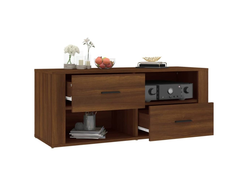 - Dostatok úložného priestoru: Stereo skrinka obsahuje zásuvky a priehradky na prehľadné usporiadanie DVD prehrávačov, herných konzol, streamovacích zariadení a nosičov médií.