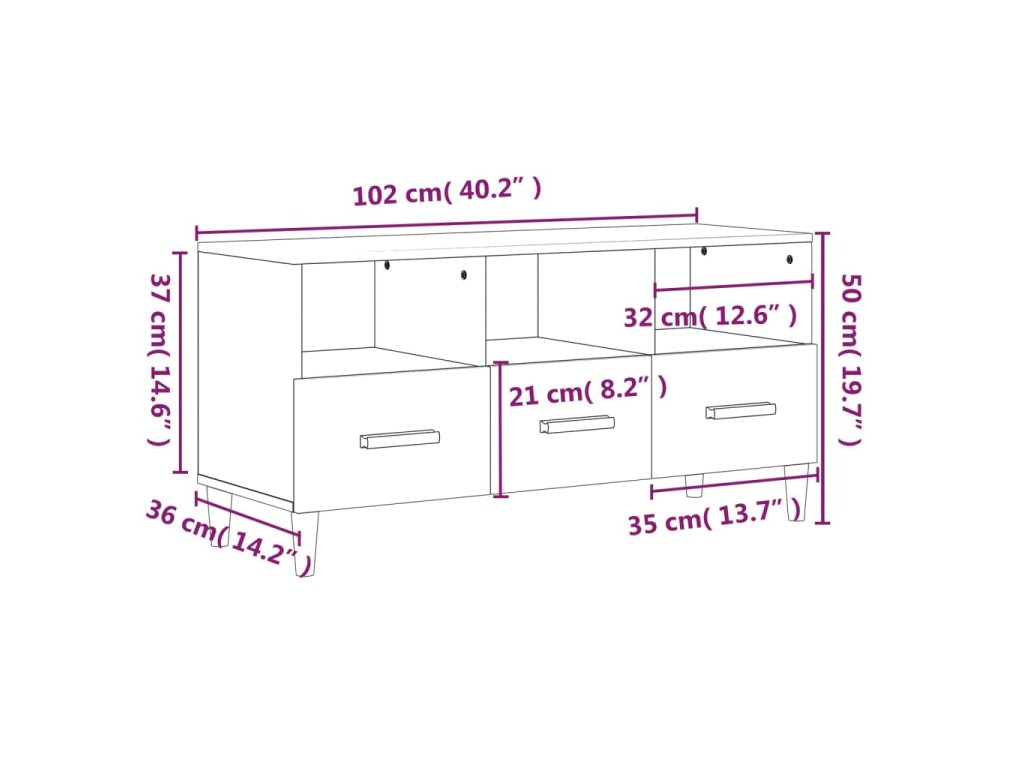 - Rozmery: 102 x 36 x 50 cm (Š x H x V)