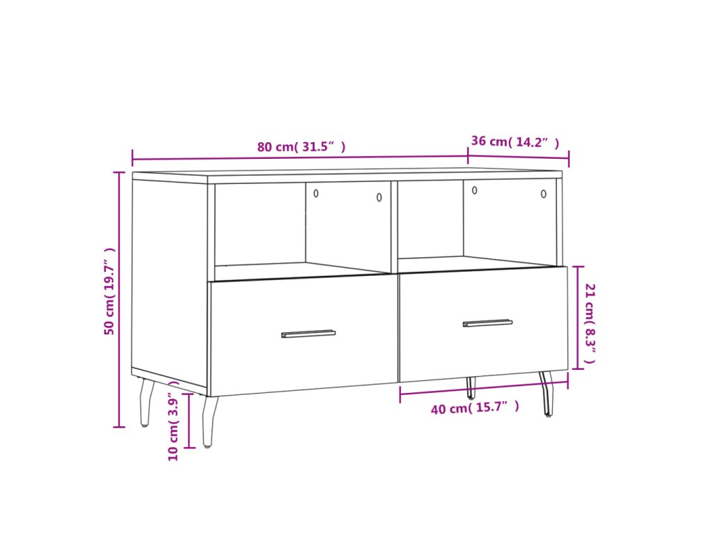 - Veľký úložný priestor: TV skrinka má 2 priečinky a 2 zásuvky, vďaka ktorým je ideálna na uloženie vašich časopisov, DVD alebo iných predmetov.