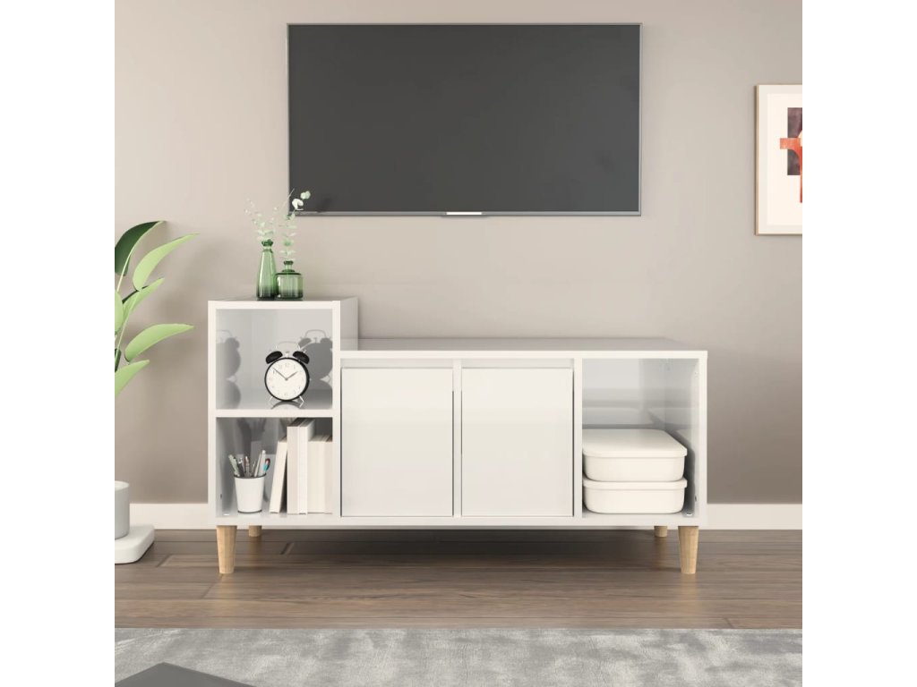- Dostatok úložného priestoru: Stereo skrinka obsahuje dvierka a priehradky na prehľadné usporiadanie DVD prehrávačov, herných konzol, streamovacích zariadení a nosičov médií.