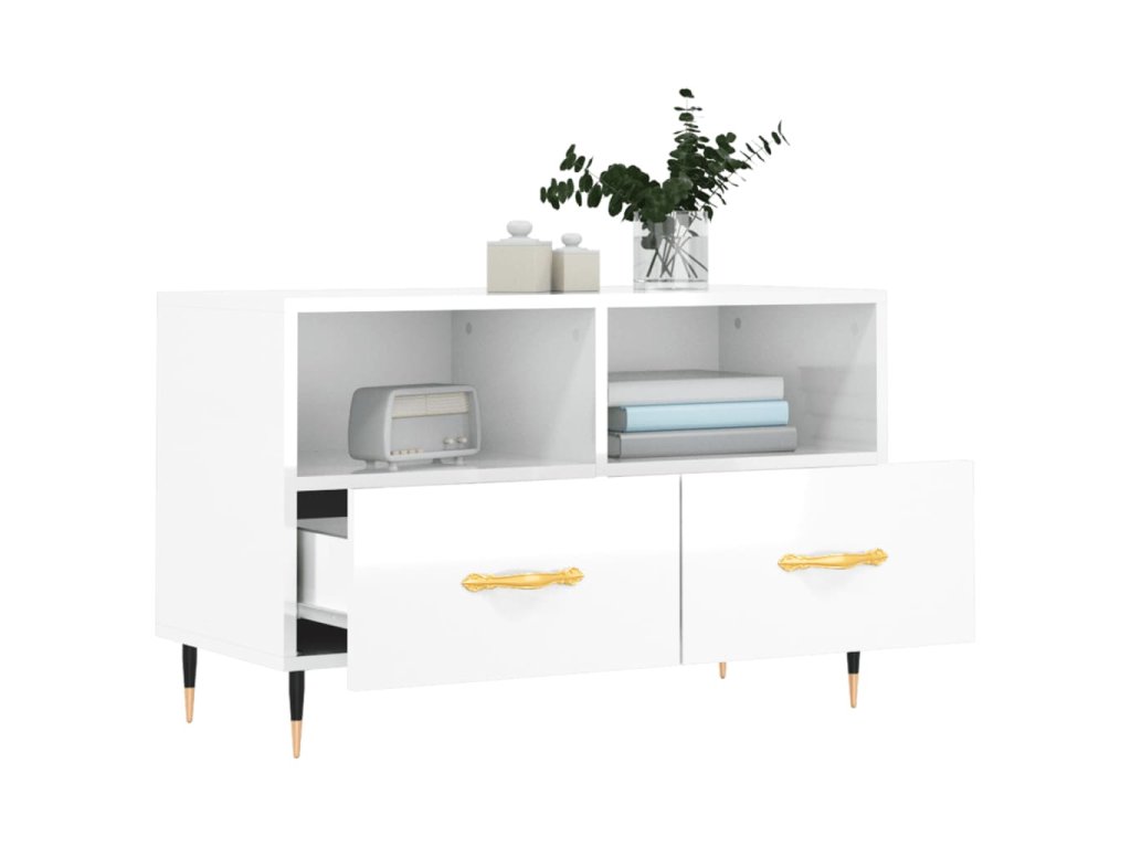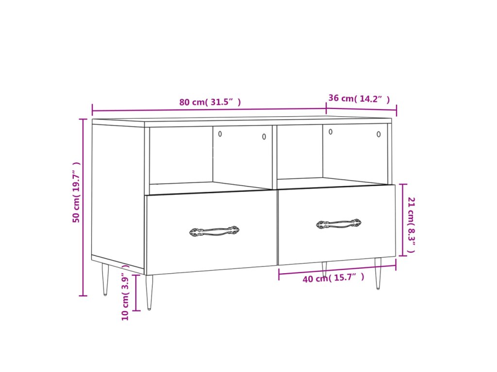 - Veľký úložný priestor: TV skrinka má 2 priečinky a 2 zásuvky, vďaka ktorým je ideálna na uloženie vašich časopisov, DVD alebo iných predmetov.