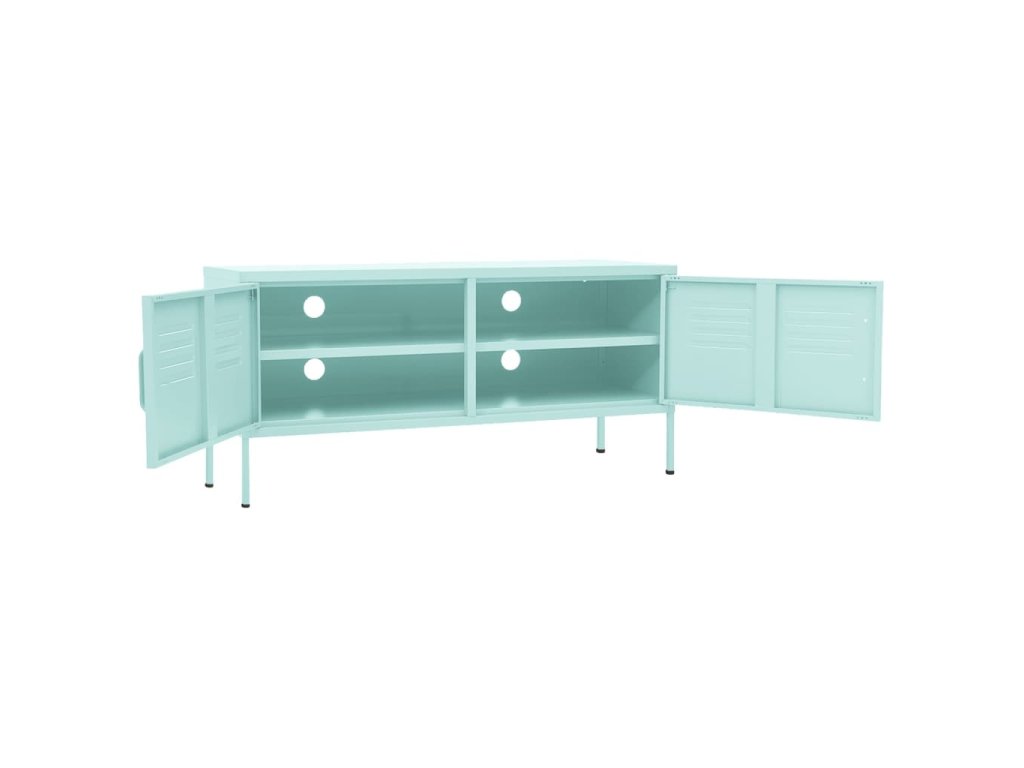Oceľová konštrukcia tejto TV jednotky je veľmi pevná a odolná. Na spodnej strane sú vyrovnávače, pomocou ktorých si výšku nastavíte podľa svojich potrieb. TV stolík má 2 dvierka s policou vo vnútri, a poskytuje dostatok úložného priestoru pre DVD, časopisy a ďalšie veci. Okrem toho sú na zadnom paneli 4 otvory na usporiadanie káblov elektronických zariadení.