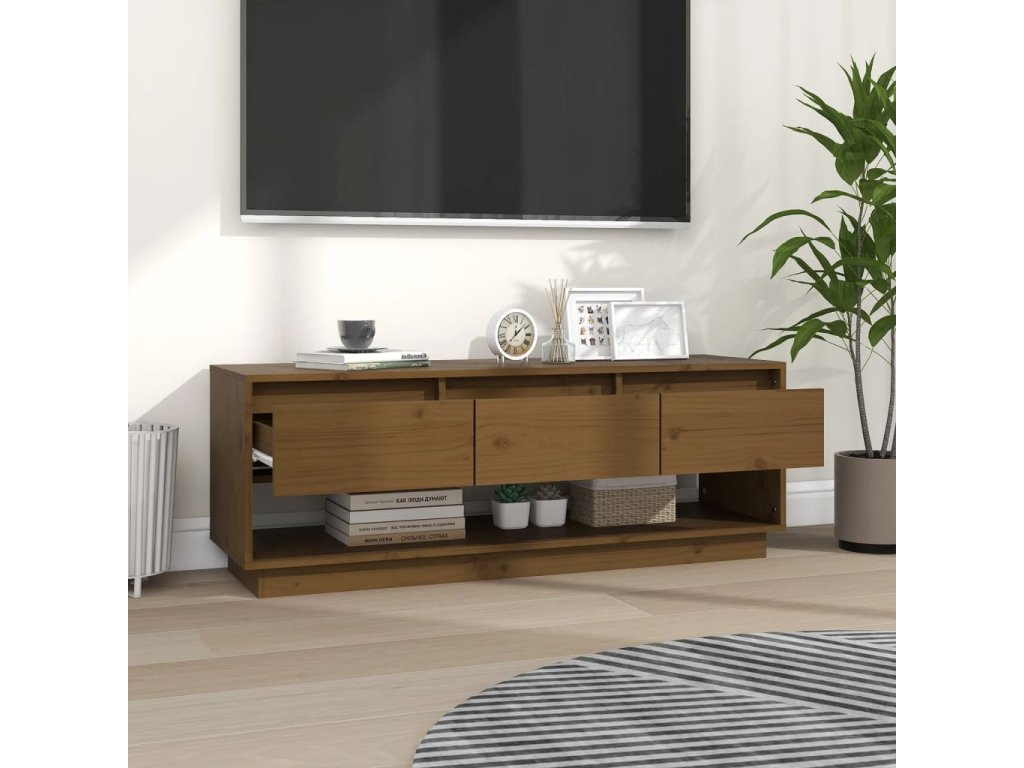 Táto drevená TV skrinka so zásuvkami, čistými líniami a jednoduchým vzhľadom dodá vašej izbe nádych elegancie.