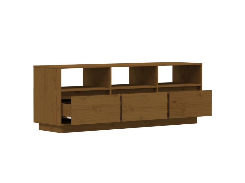 Táto nízka skrinka s nohami je vyrobená z masívneho borovicového dreva a vyznačuje sa stabilnou a odolnou konštrukciou. Stereo skrinka vybavená 3 priečinkami a 3 dvierkami je ideálna na prehľadné usporiadanie vašich DVD diskov, hernej konzoly, časopisov a iných predmetov. Televízny stojan sa navyše ľahko čistí vlhkou handričkou.