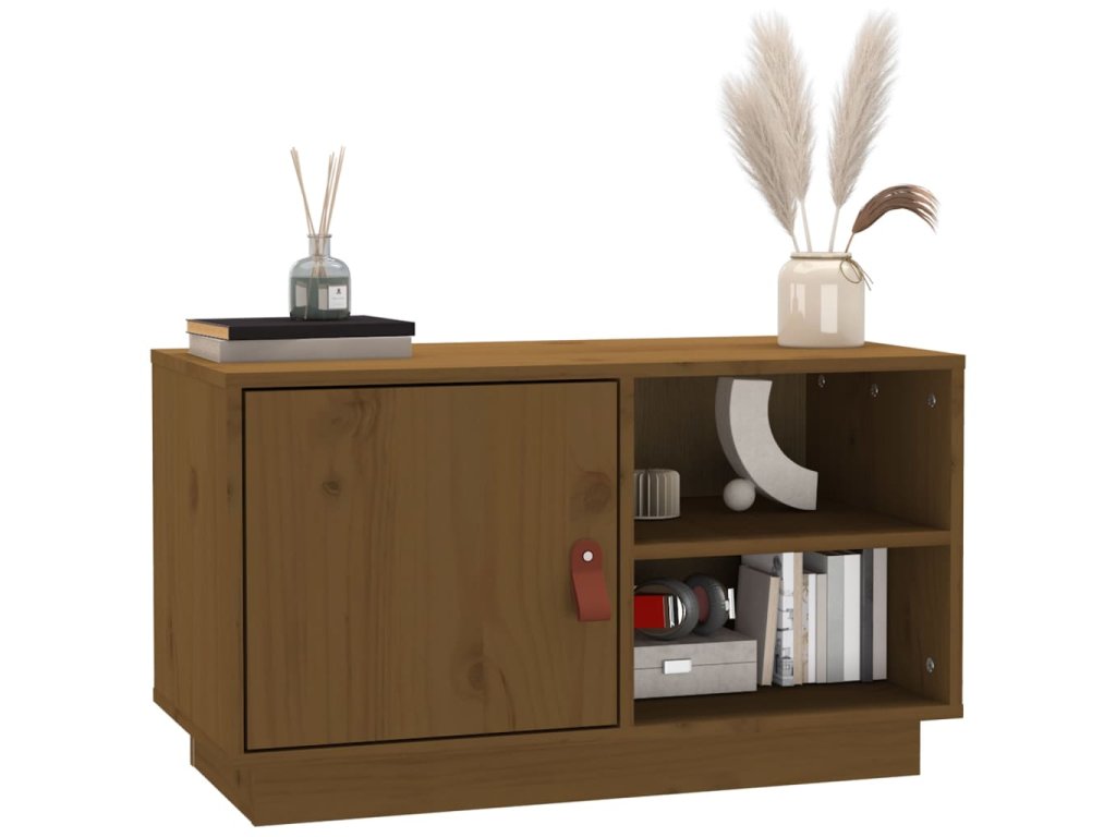- Masívne borovicové drevo: Masívne borovicové drevo je krásny prírodný materiál. Borovicové drevo má rovnú štruktúru a uzly dodávajú materiálu jeho typický rustikálny vzhľad. Tento TV stolík je vyrobený z masívneho dreva pre extra stabilitu.