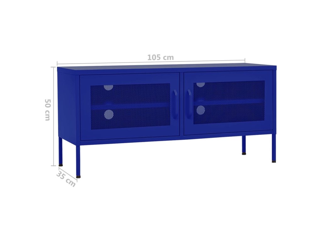 Oceľová konštrukcia tejto TV jednotky je veľmi pevná a odolná. Na spodnej strane sú vyrovnávače, pomocou ktorých si výšku nastavíte podľa svojich potrieb. TV stolík má 2 sieťované dvierka s policou vo vnútri, a poskytuje dostatok úložného priestoru pre DVD, časopisy a ďalšie veci. Okrem toho sú na zadnom paneli 4 otvory na usporiadanie káblov elektronický zariadení. Ľahko sa čistí vlhkou handričkou.