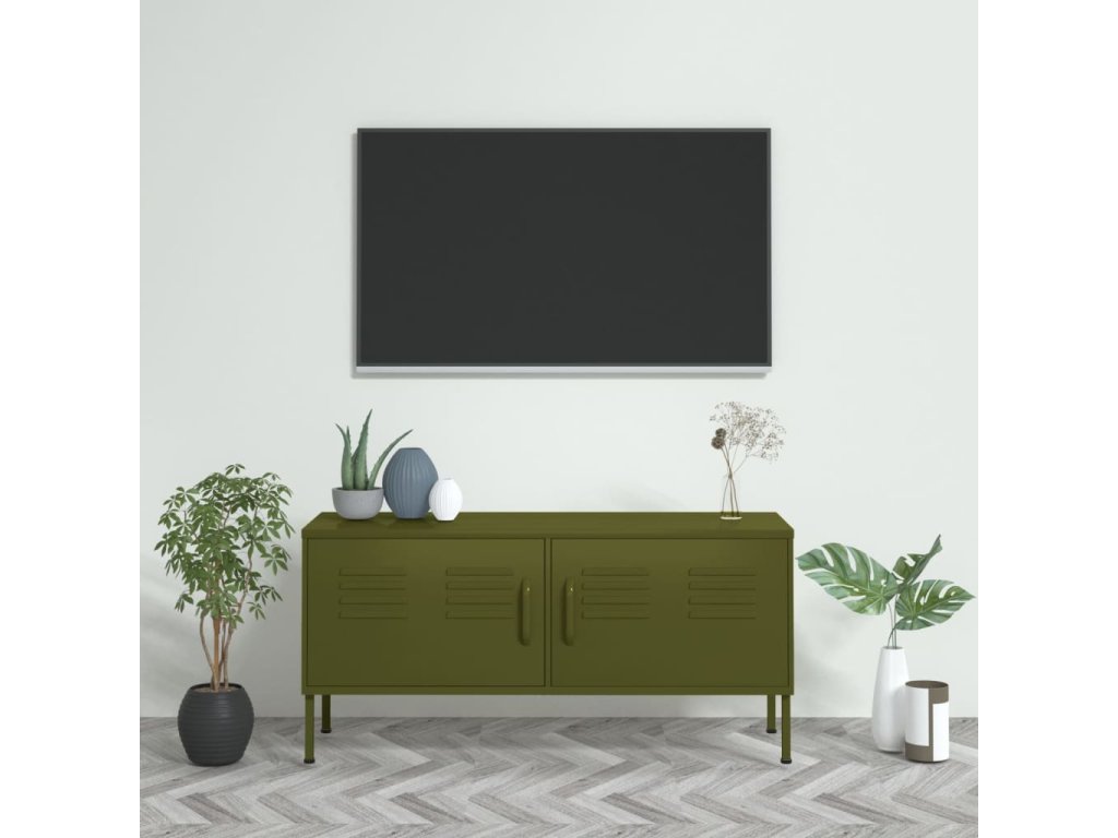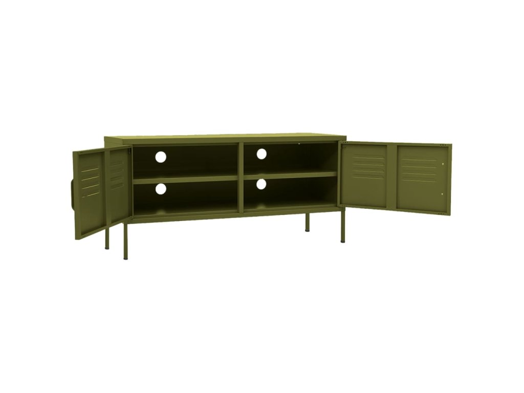 Oceľová konštrukcia tejto TV jednotky je veľmi pevná a odolná. Na spodnej strane sú vyrovnávače, pomocou ktorých si výšku nastavíte podľa svojich potrieb. TV stolík má 2 dvierka s policou vo vnútri, a poskytuje dostatok úložného priestoru pre DVD, časopisy a ďalšie veci. Okrem toho sú na zadnom paneli 4 otvory na usporiadanie káblov elektronických zariadení.