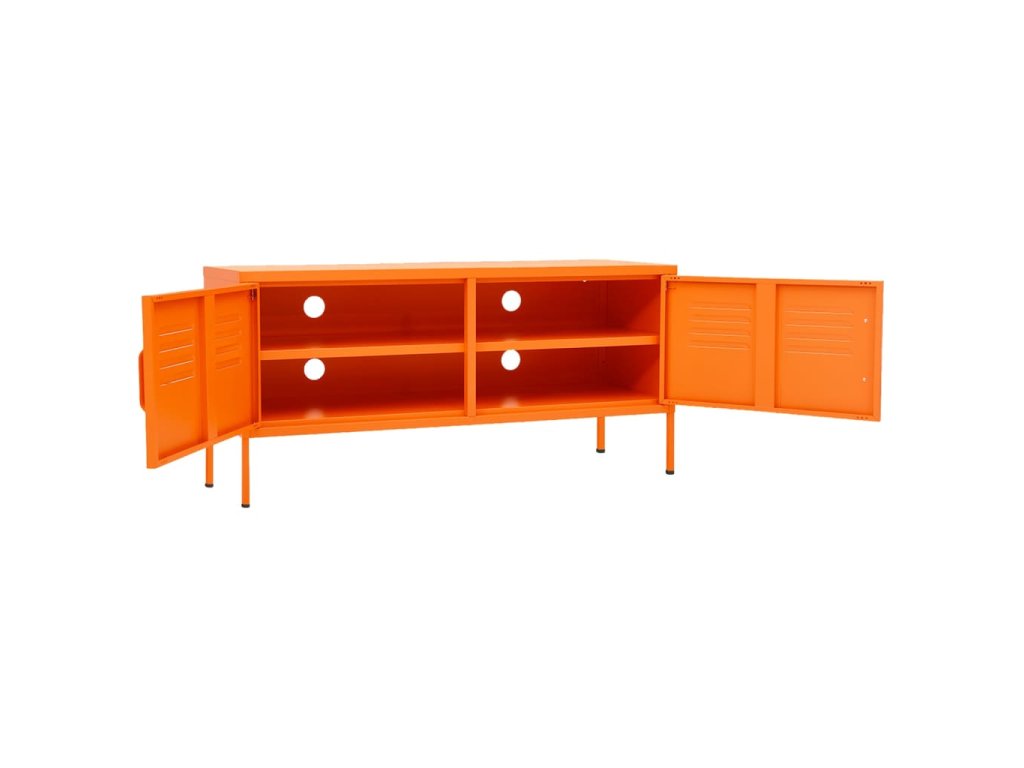 Oceľová konštrukcia tejto TV jednotky je veľmi pevná a odolná. Na spodnej strane sú vyrovnávače, pomocou ktorých si výšku nastavíte podľa svojich potrieb. TV stolík má 2 dvierka s policou vo vnútri, a poskytuje dostatok úložného priestoru pre DVD, časopisy a ďalšie veci. Okrem toho sú na zadnom paneli 4 otvory na usporiadanie káblov elektronických zariadení.