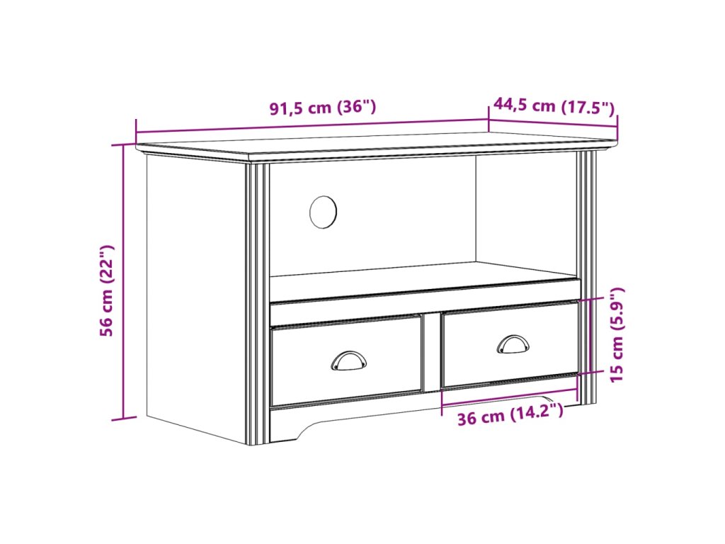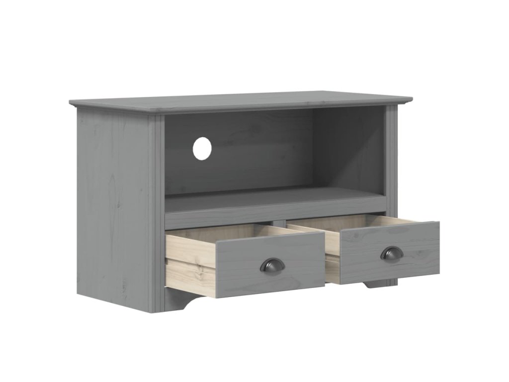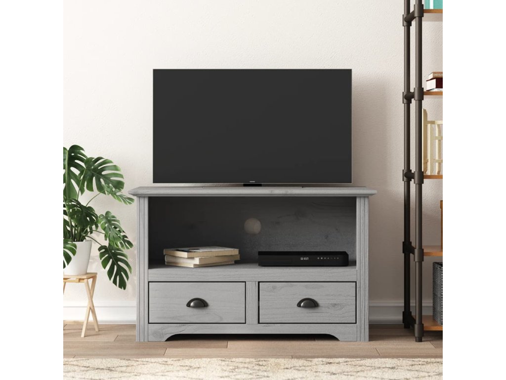 - Borovicový masív: Borovicový masív je krásny prírodný materiál. Borovicové drevo má rovnú kresbu a nachádzajú sa na ňom uzly, ktoré tomuto materiálu dodávajú charakteristický rustikálny vzhľad. TV stojan je vyrobený z masívneho borovicového dreva, a je pevný a stabilný.