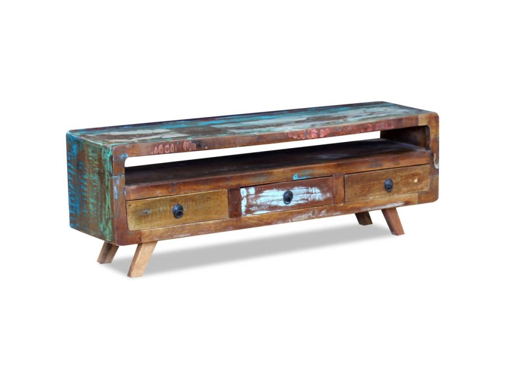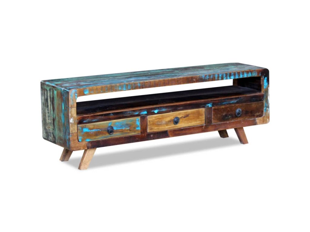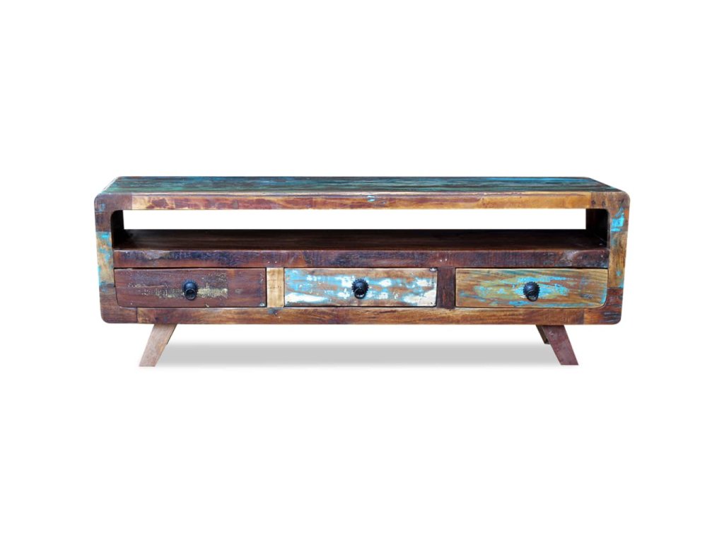 Táto TV skrinka je vyrobená z recyklovaného masívu, a preto nenájdete dva rovnaké kúsky tohto nábytku - každý je jedinečný. Nábytok vyrobený z recyklovaného dreva má podobné vlastnosti ako napríklad tíkové, mangové a akáciové drevo. Recyklované drevo je pevné, stabilné, trvácne a krásne. Známky opotrebovania a viditeľná textúra dreva odrážajú históriu jednotlivých kúskov nábytku a dodávajú im jedinečný vzhľad.