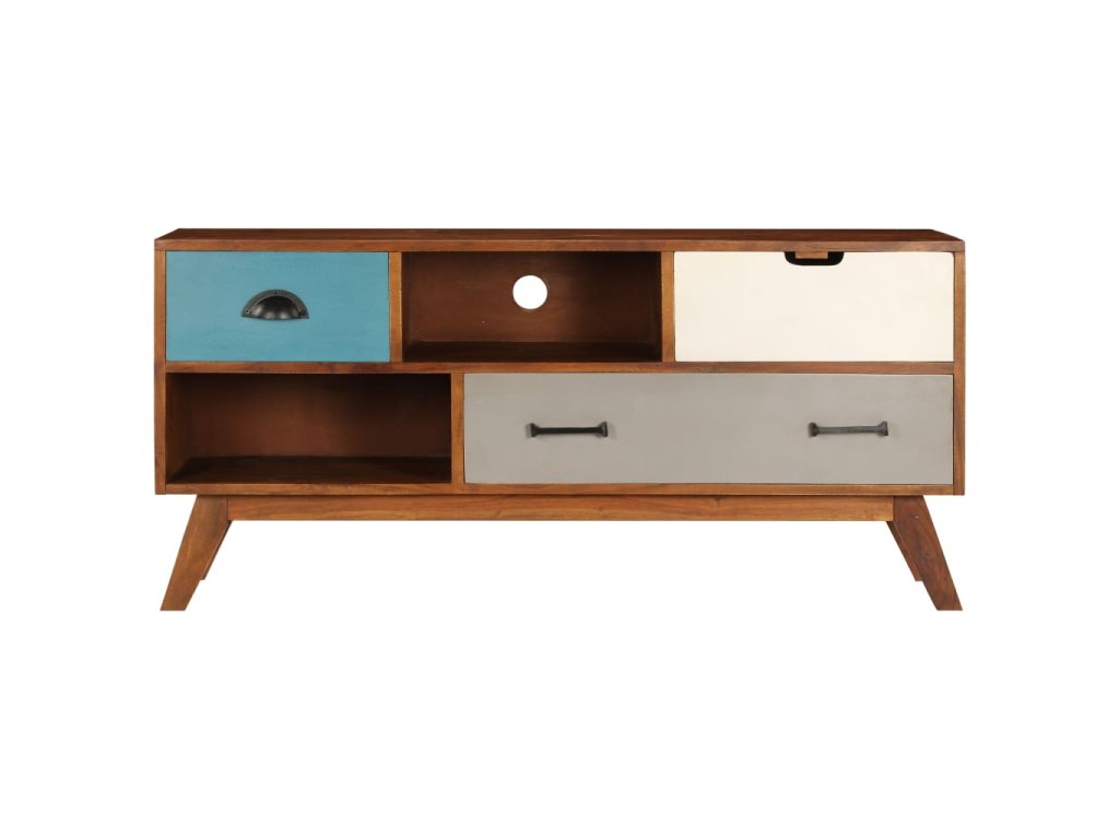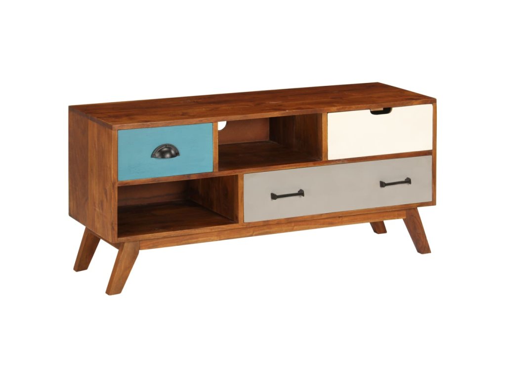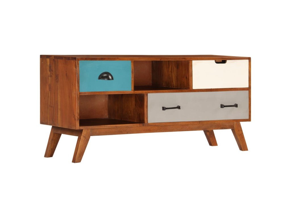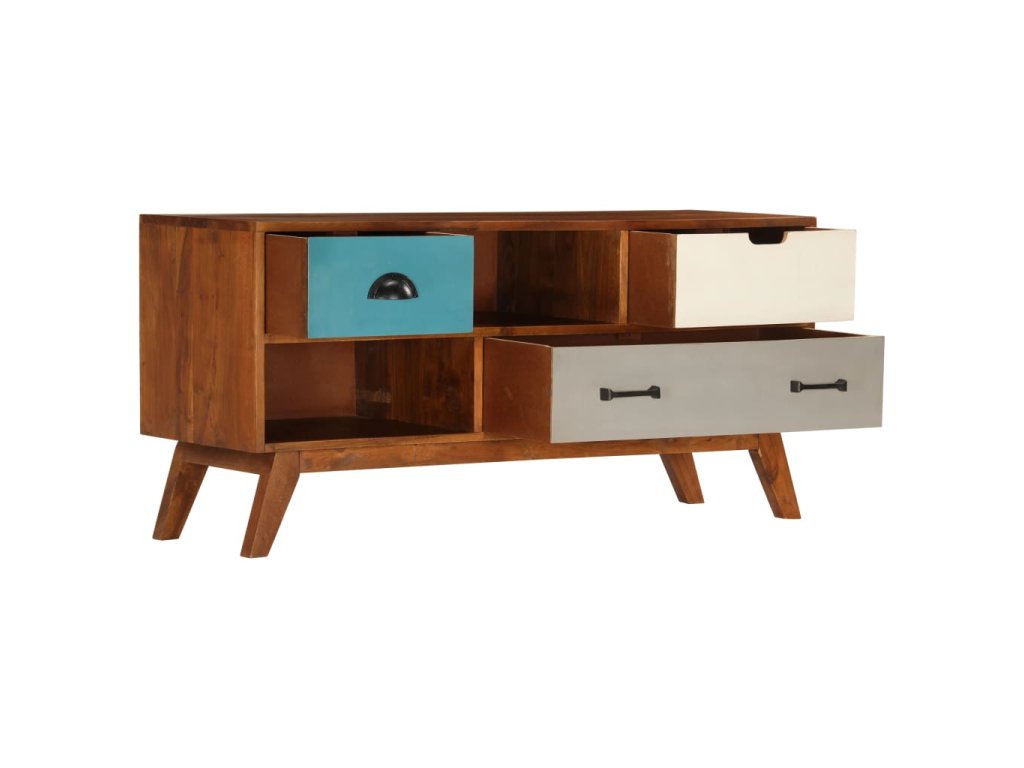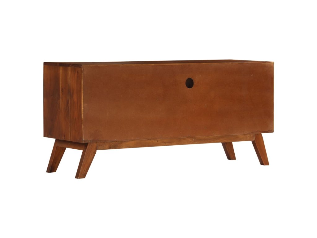 Táto TV skrinka je vyrobená z masívneho akáciového dreva s náterom v tmavej medovej farbe, vďaka ktorému je veľmi stabilná a odolná. Každý krok výrobného procesu sa vykonáva s najvyššou starostlivosťou, či už ide o leštenie, maľovanie a lakovanie. Vďaka remeselnému spracovaniu a krásnej drevenej štruktúre je každý kus nábytku jedinečný a mierne odlišný od ďalšieho kusu. Vďaka 3 zásuvkám a 2 úložným priehradkám môžete jednoducho uložiť svoje digitálne multimediálne zariadenia, hernú konzolu, nosiče médií alebo iné predmety. Montáž je jednoduchá.