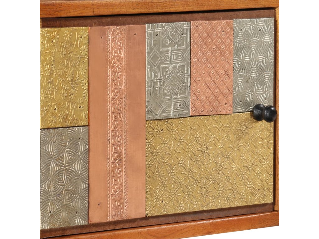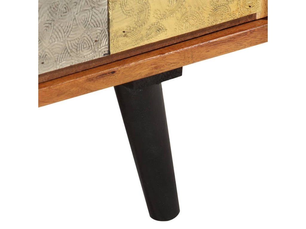 - Ozdobné detaily a úchytky: Krásne, dekoratívne kovové detaily v rôznych farebných odtieňoch a úchytky v antickom štýle dodávajú tejto hifi skrinke nádych vintage šarmu.
